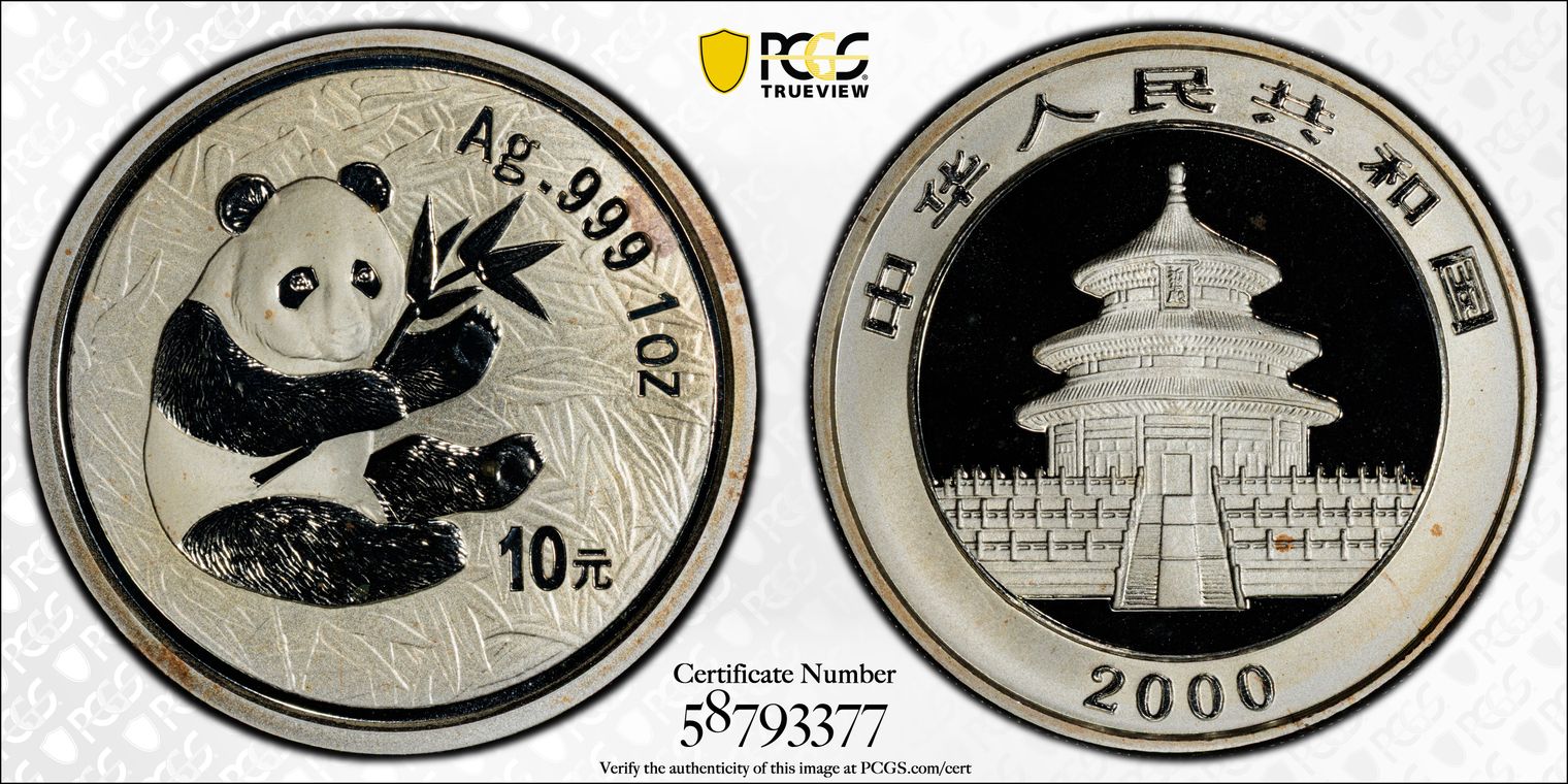 2000(国) 10 Yn Panda Silver Frosted PAN-333A MS69