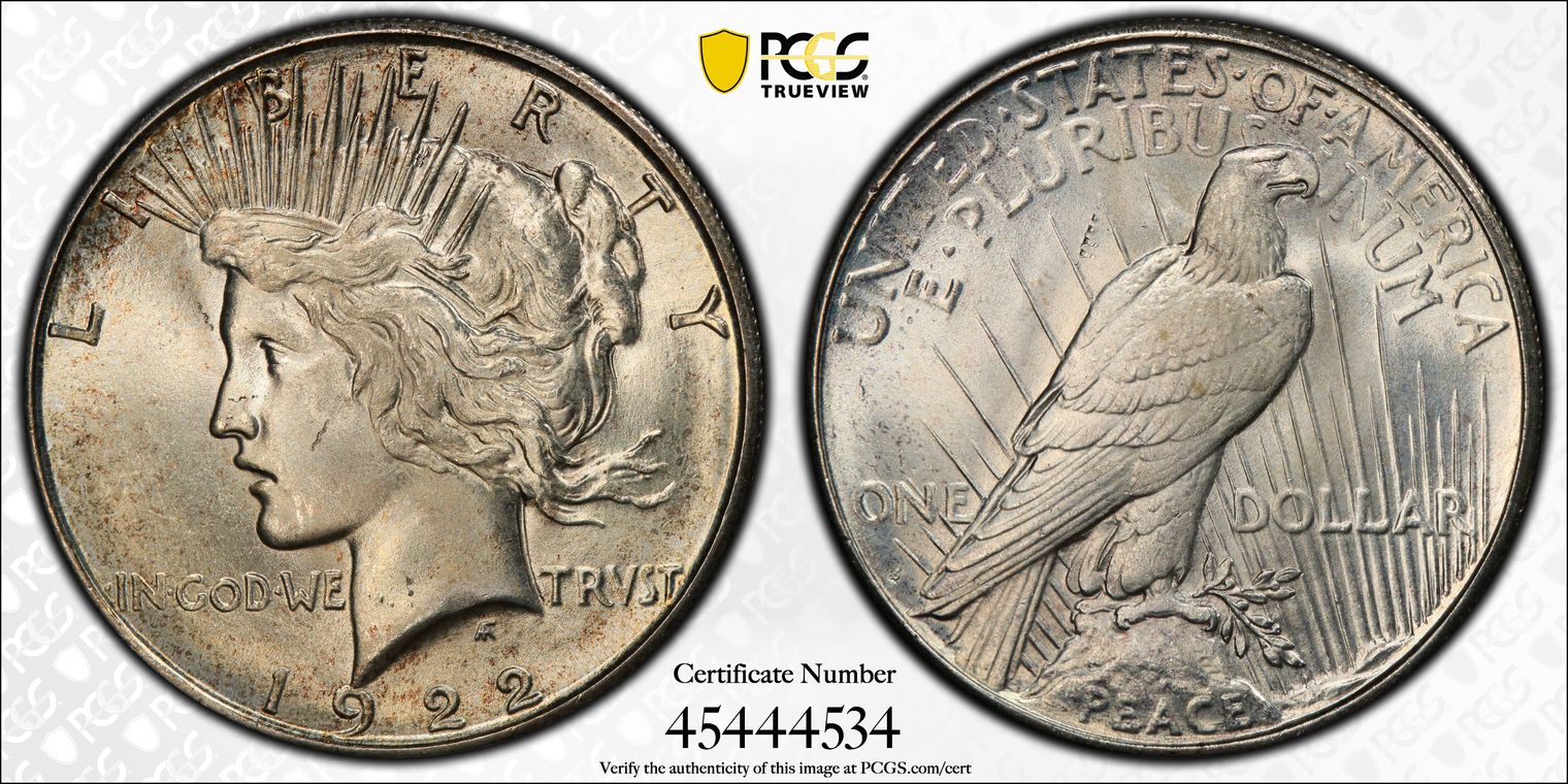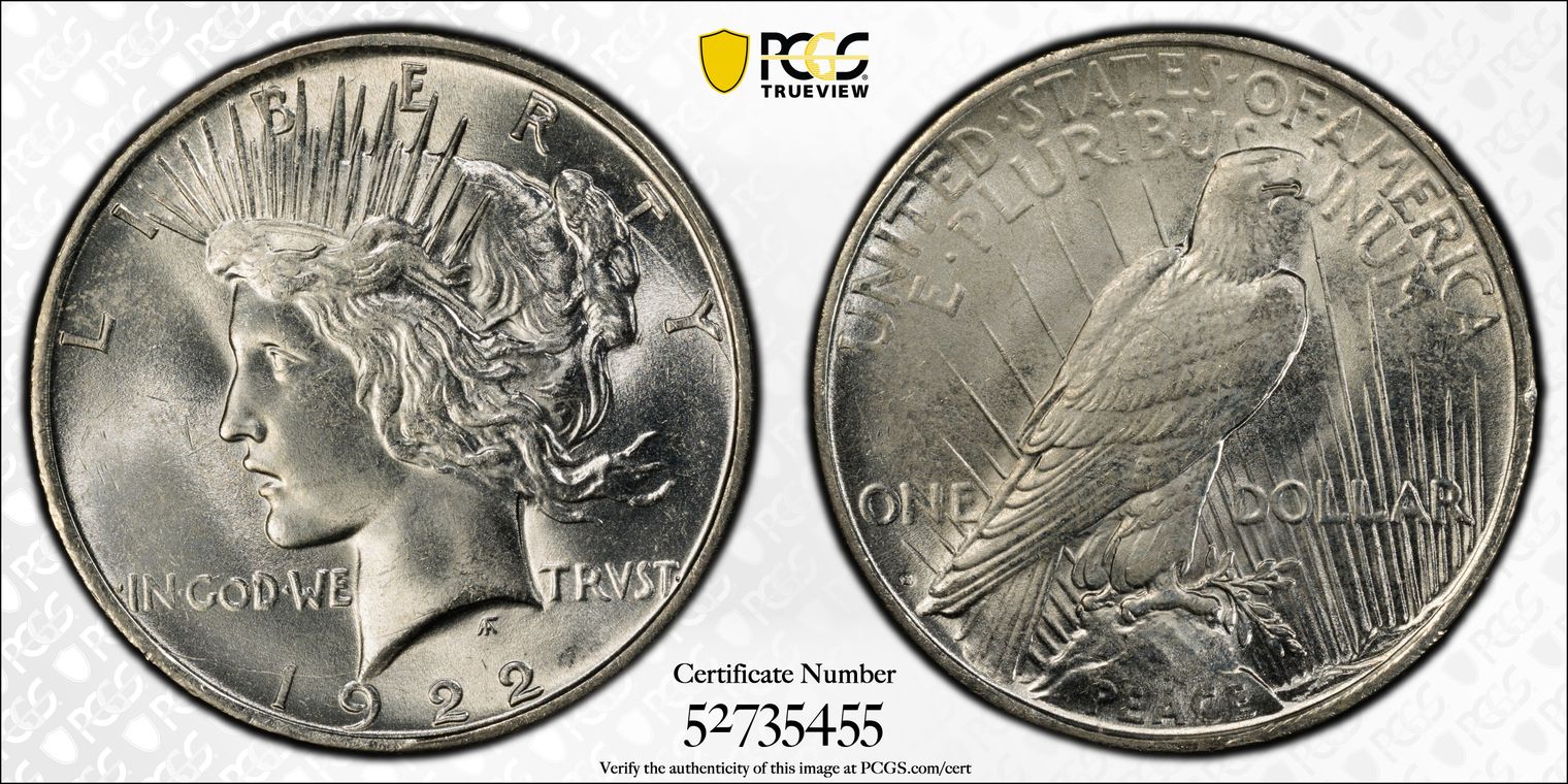 1921 $1 High Relief, Peace MS65+