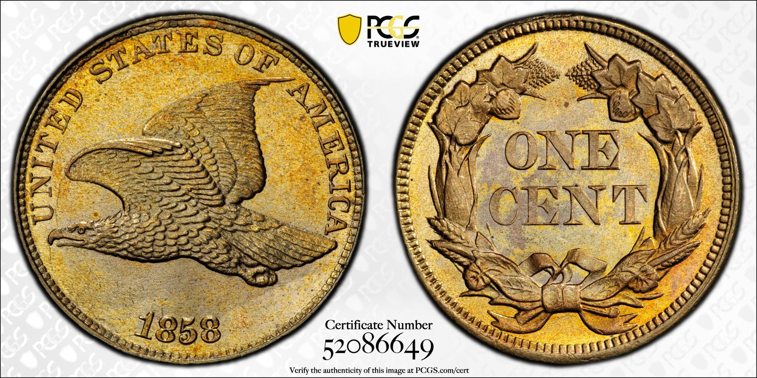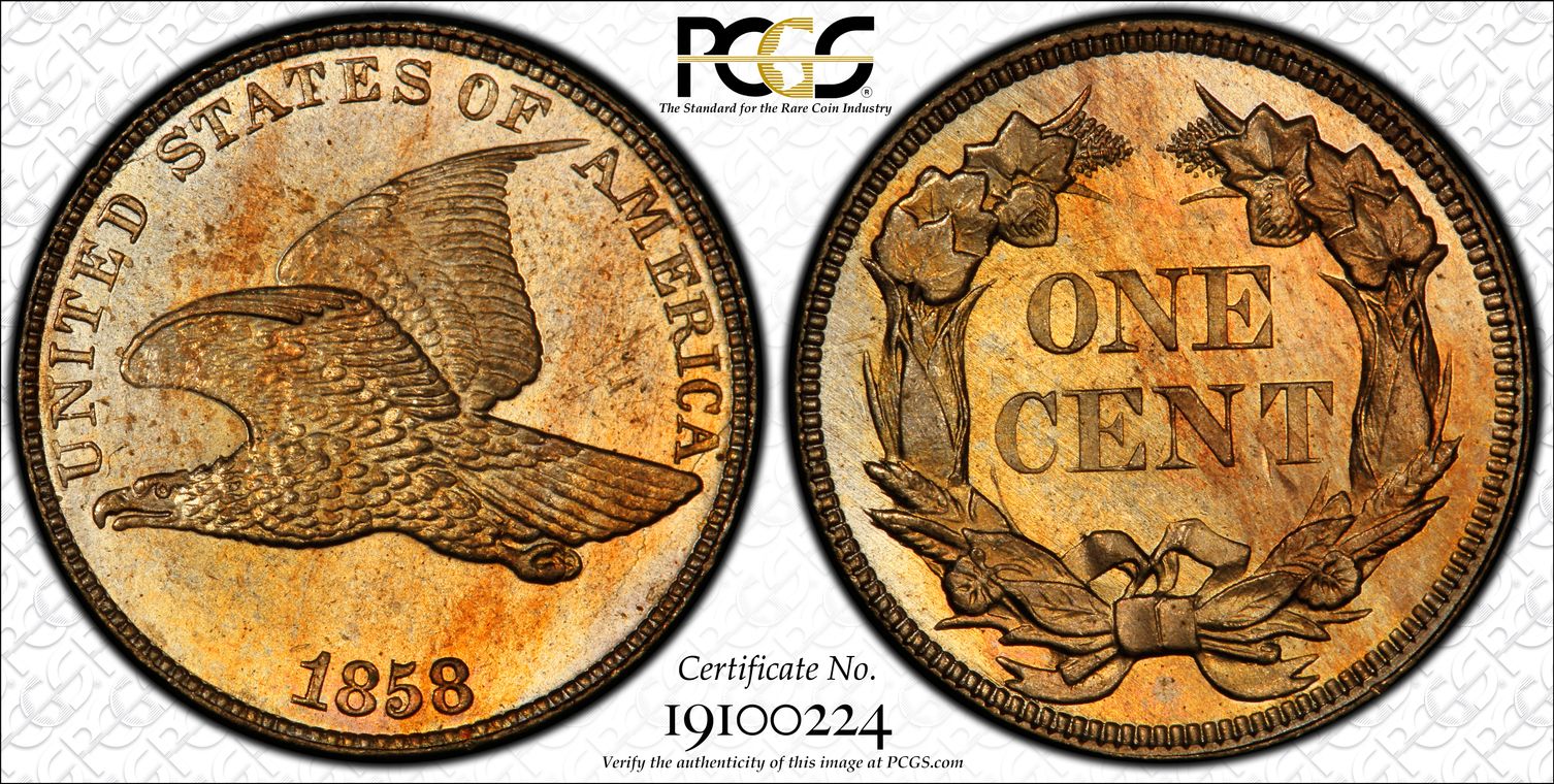 CAC. Stewart Blay Collections - The Best & The Best Eagles Flying. A legendary coin from a legendary collector. One of the most beautiful coins I’ve ever seen. Full strike, highly lustrous, subtle two tone woodgrain surface simillar to an artist’s rendition (which Stewart was). Cool die crack through the tail area, sometimes seen on 1858 LL’s, but unique for a 1857. Needle like object in left wing adds to the coin’s lore. There are none better than this one for the popular 1857 date.