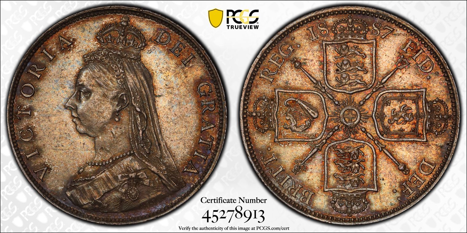 DENMARK. 2 Kroner, 1912-VBP AH. Copenhagen Mint. PCGS AU-58 Gold Shield. KM-811. Struck to commemorate the death of Frederik VIII and the accession of Christian X, this delightful coin presents tremendous toning. Estimate: $40. Click here for certification details from PCGS. Image with the PCGS TrueView logo is obtained from and is subject to a license agreement with Collectors Universe, Inc. and its divisions PCGS and PSA.