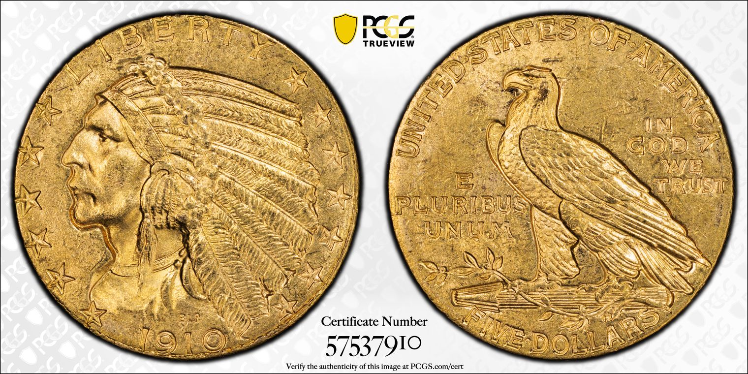 1910 $5 MS63+