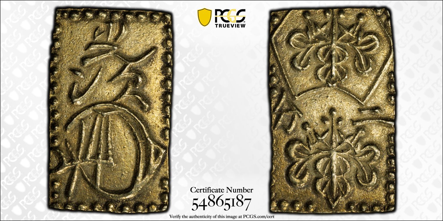 This is a scarce variety with "hane" or "jumping" characters. Hartill 9.85 Ga, JNDA 09-53. Although a comparatively low grade compared to other surviving examples, this coin is much harder to find.