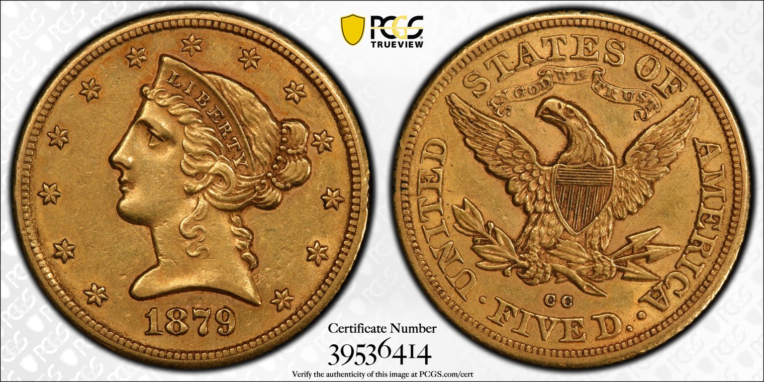 1879-CC $5 AU55+