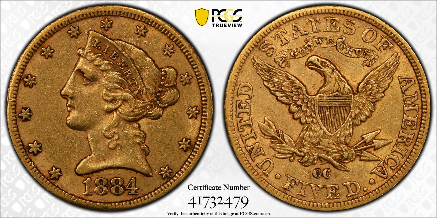 1884-CC $5 AU55
