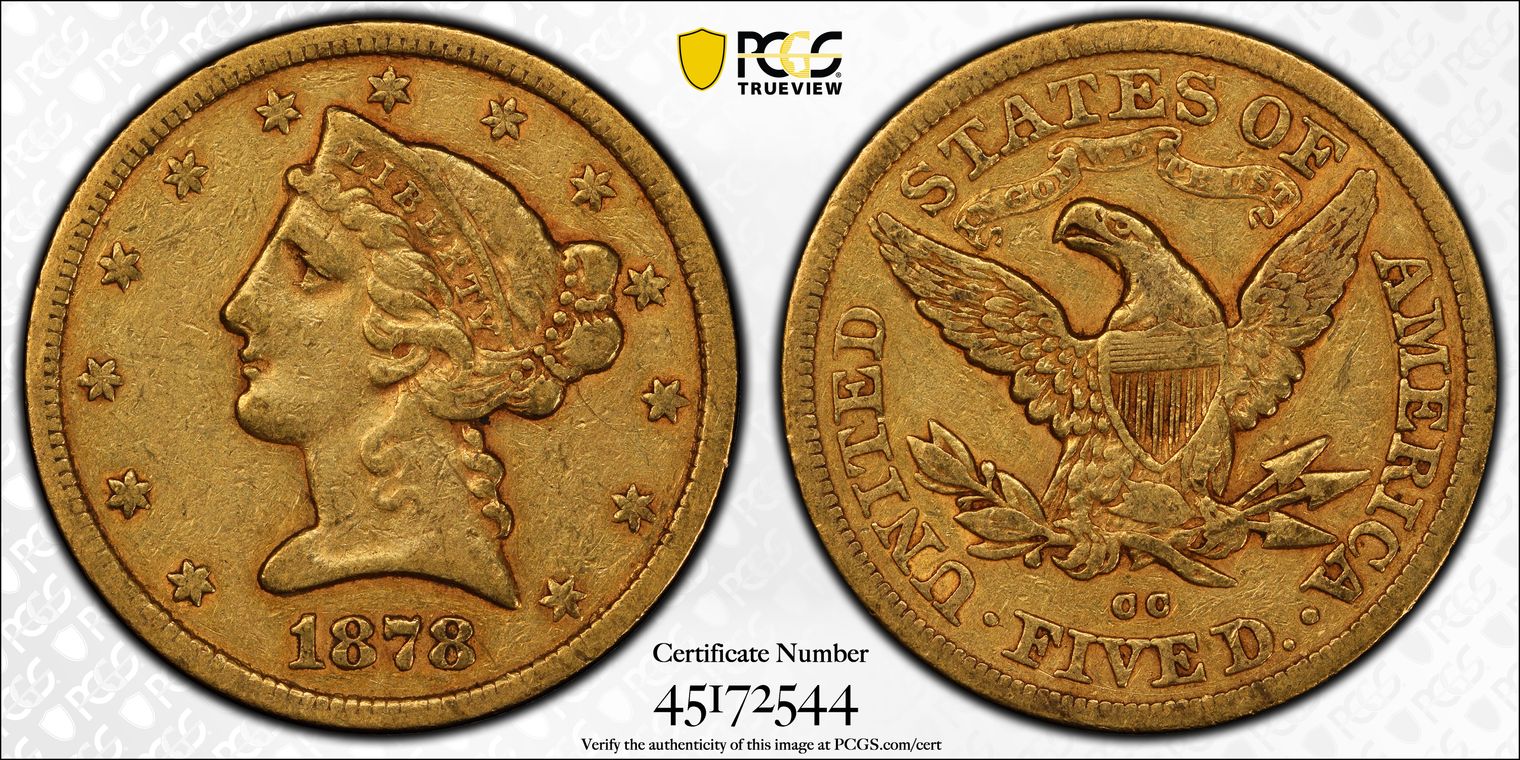 1878-CC $5 XF40