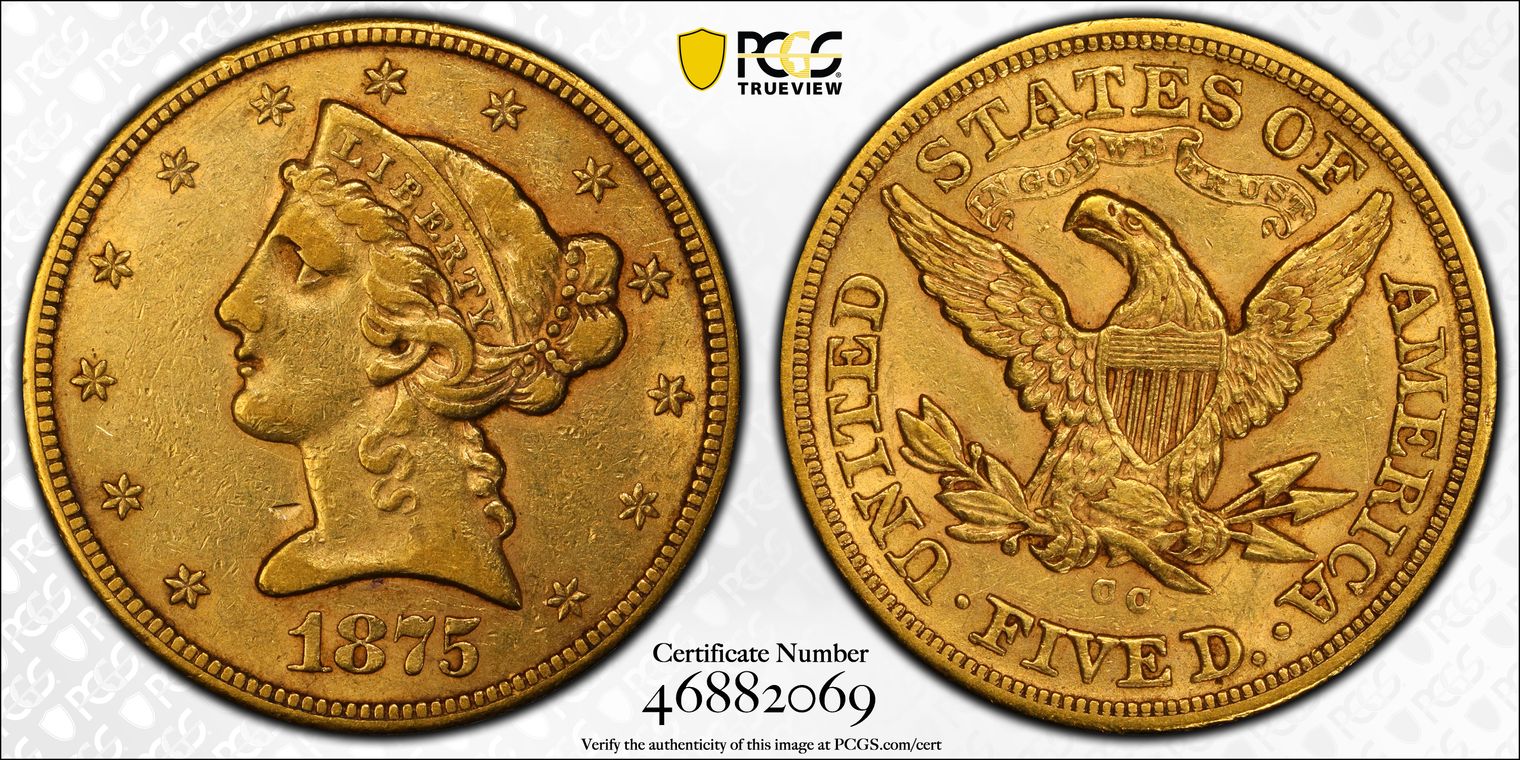 1875-CC $5 AU53
