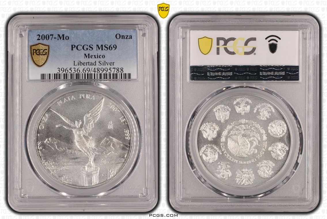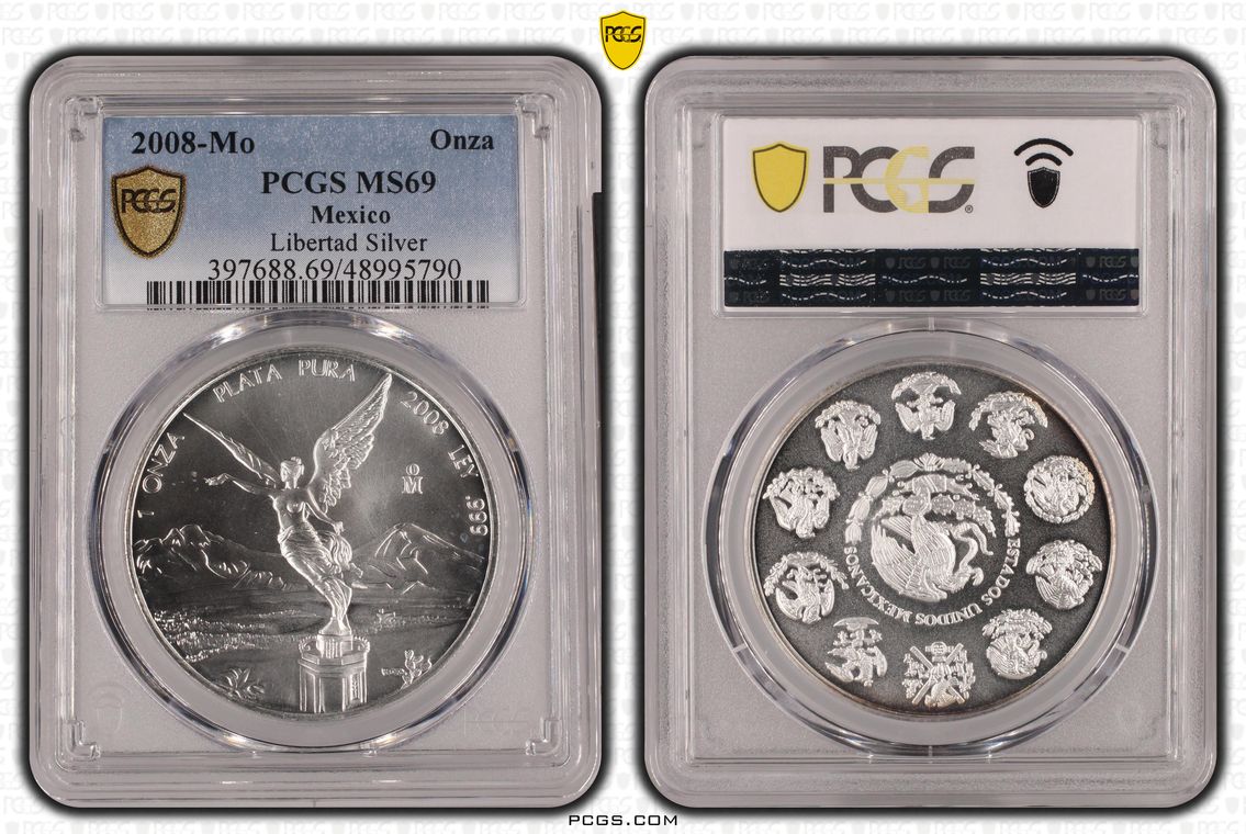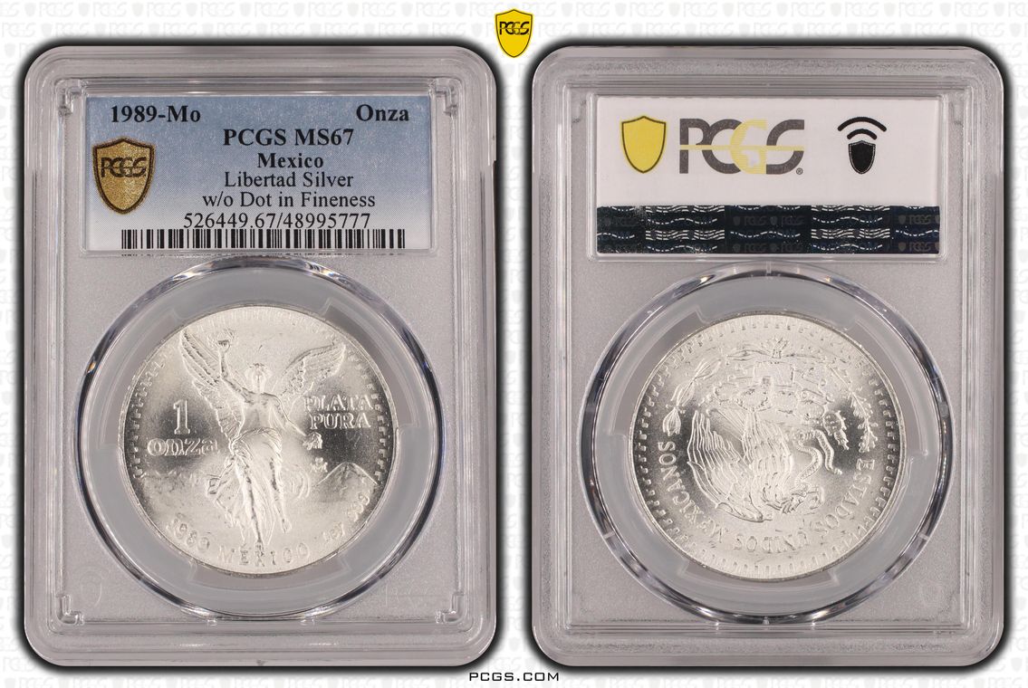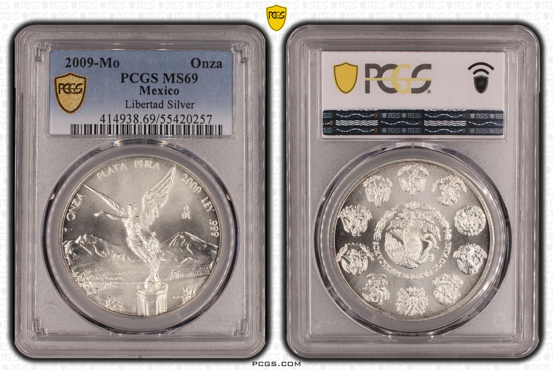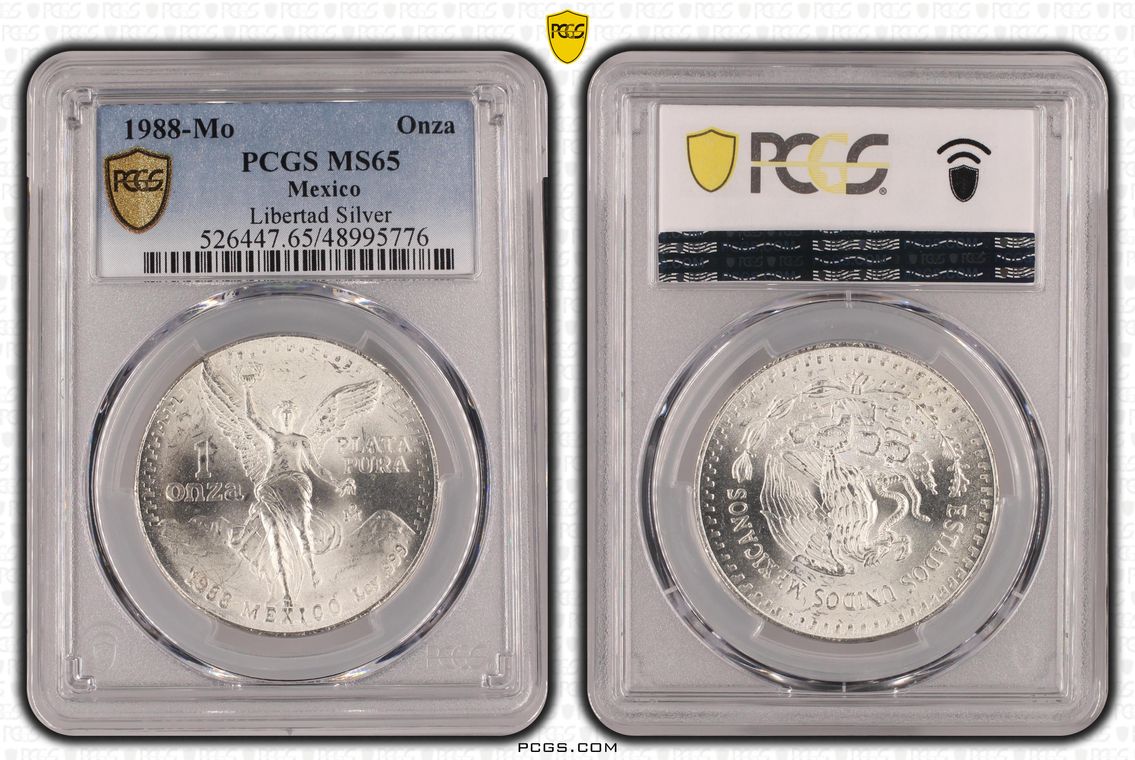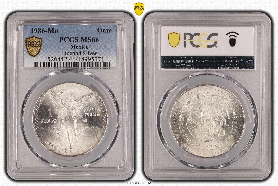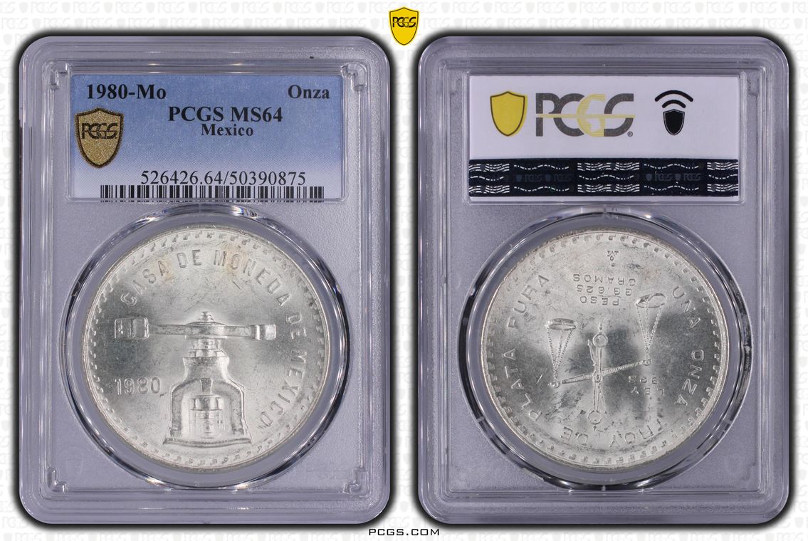 PCGS White Mexico label. Holder shows cracks on the reverse, but is still intact. No milk spots or other comments.