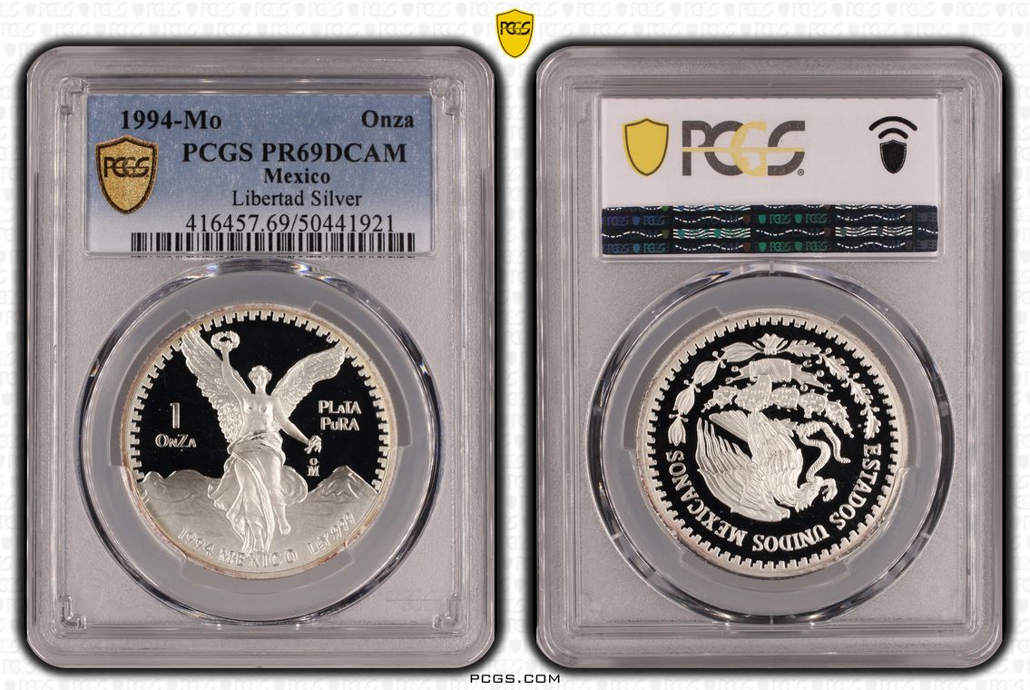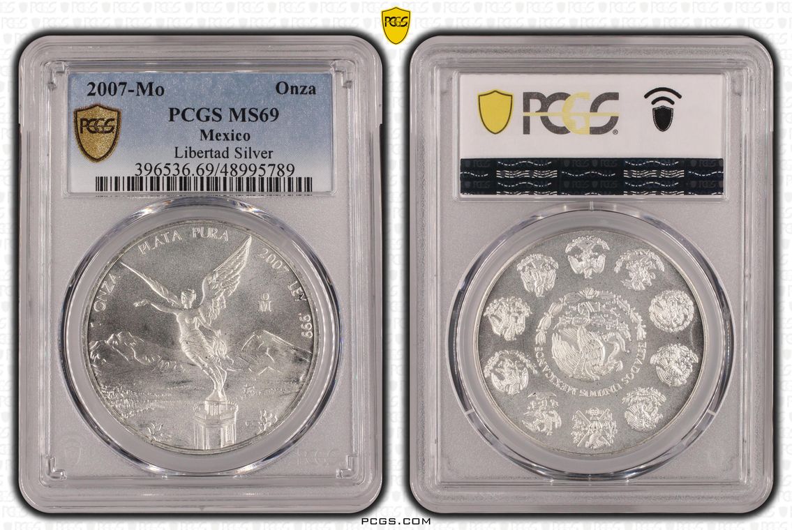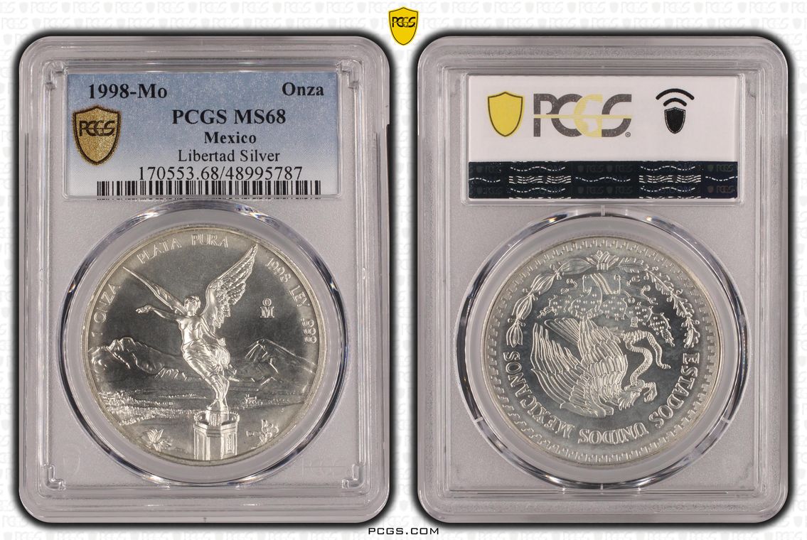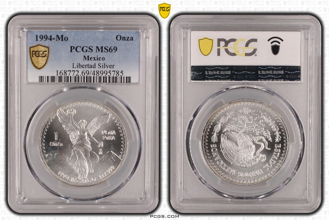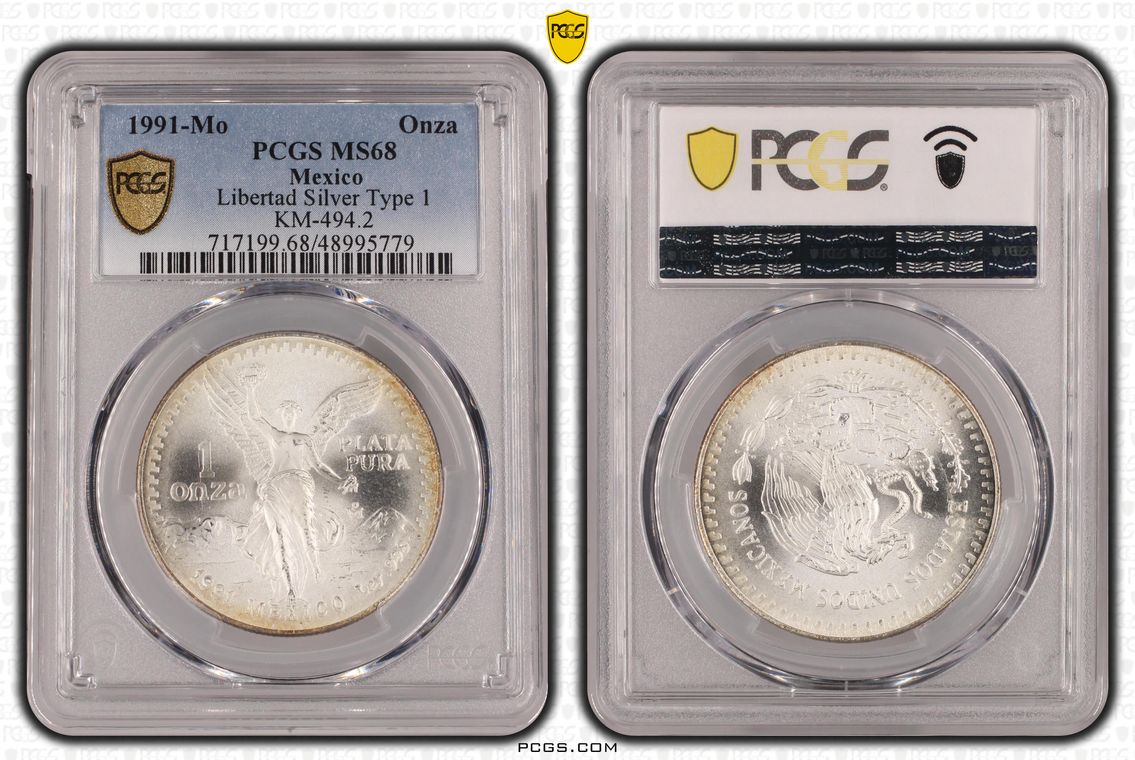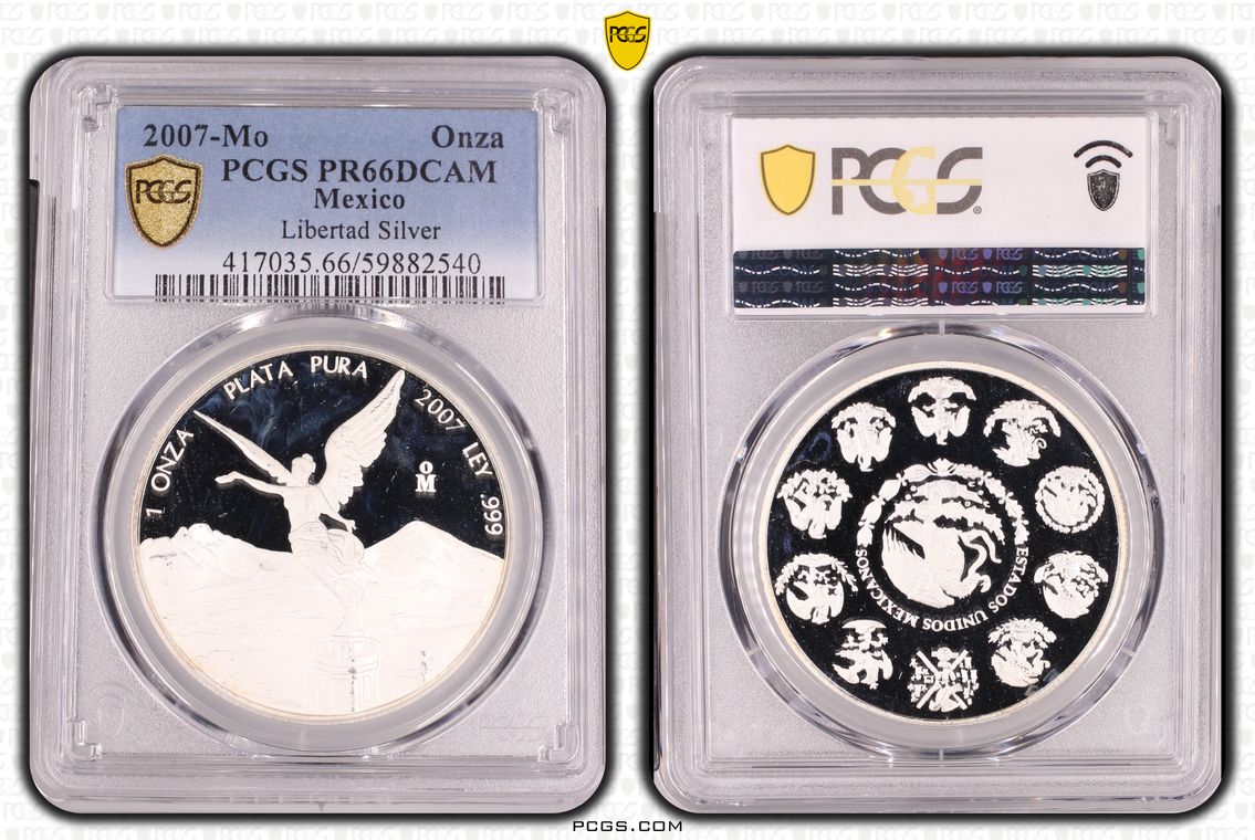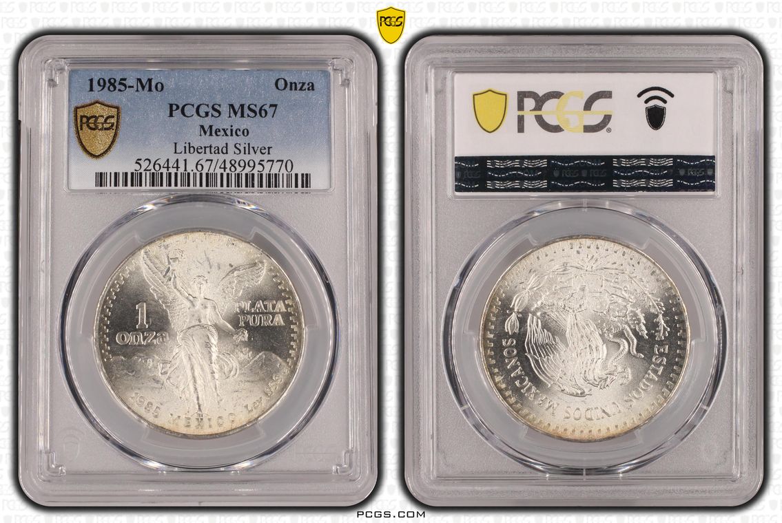 PCGS White Mexico label. Holder shows cracks on the reverse, but is still intact. No milk spots or other comments.