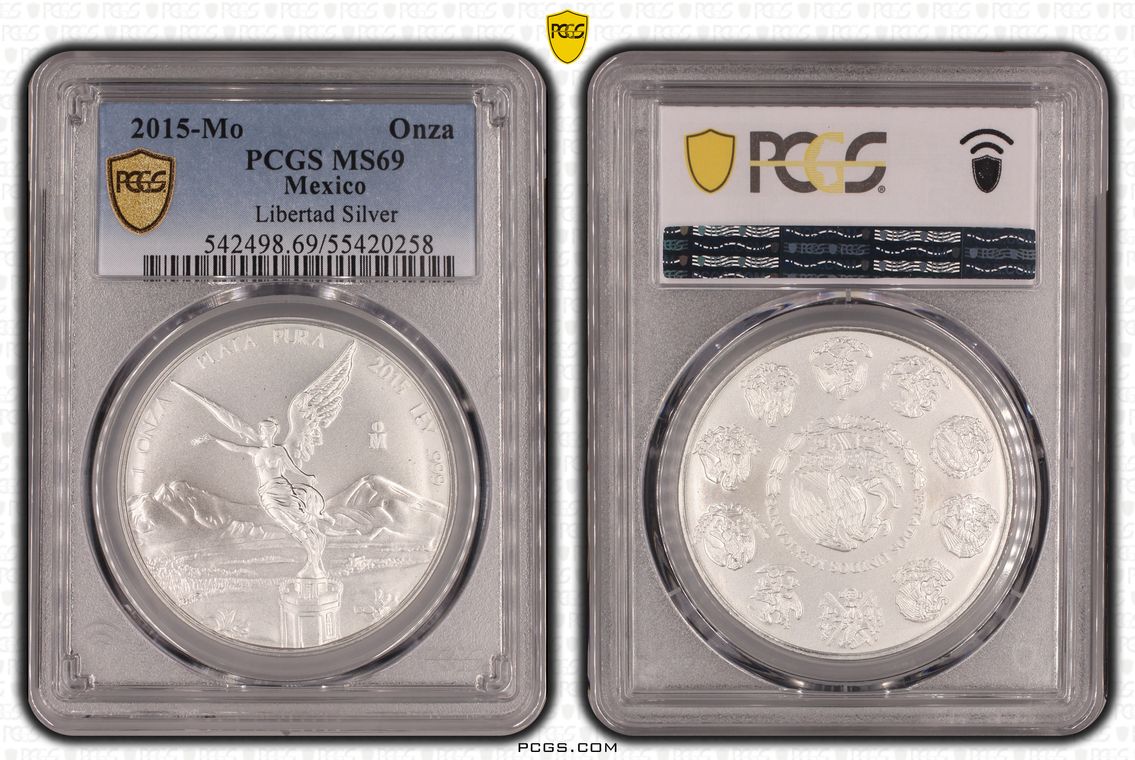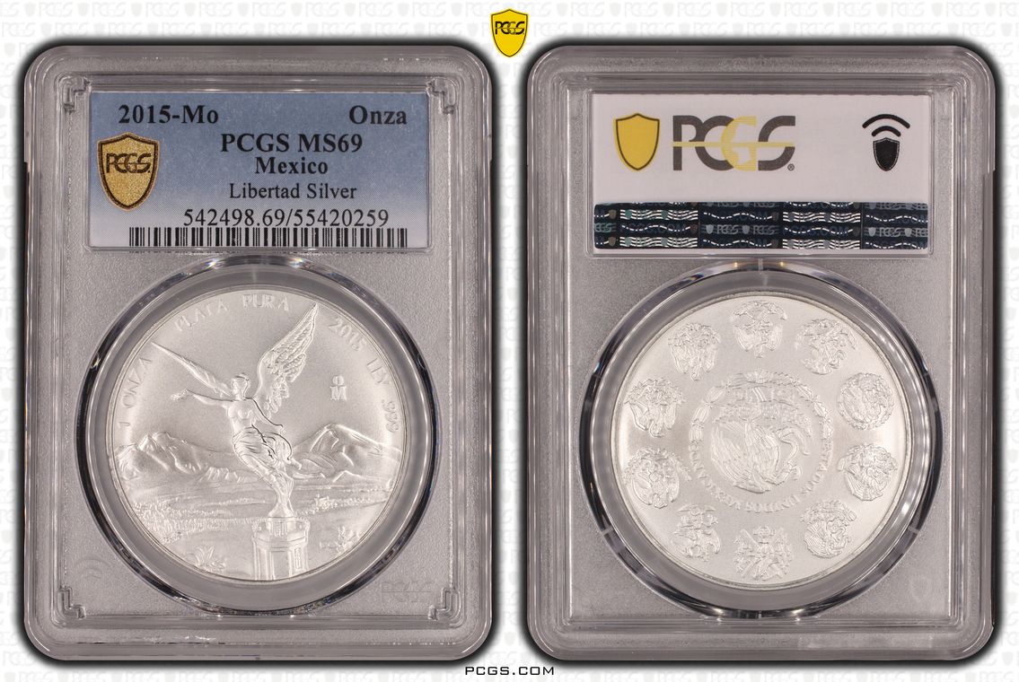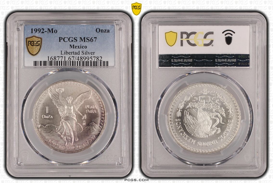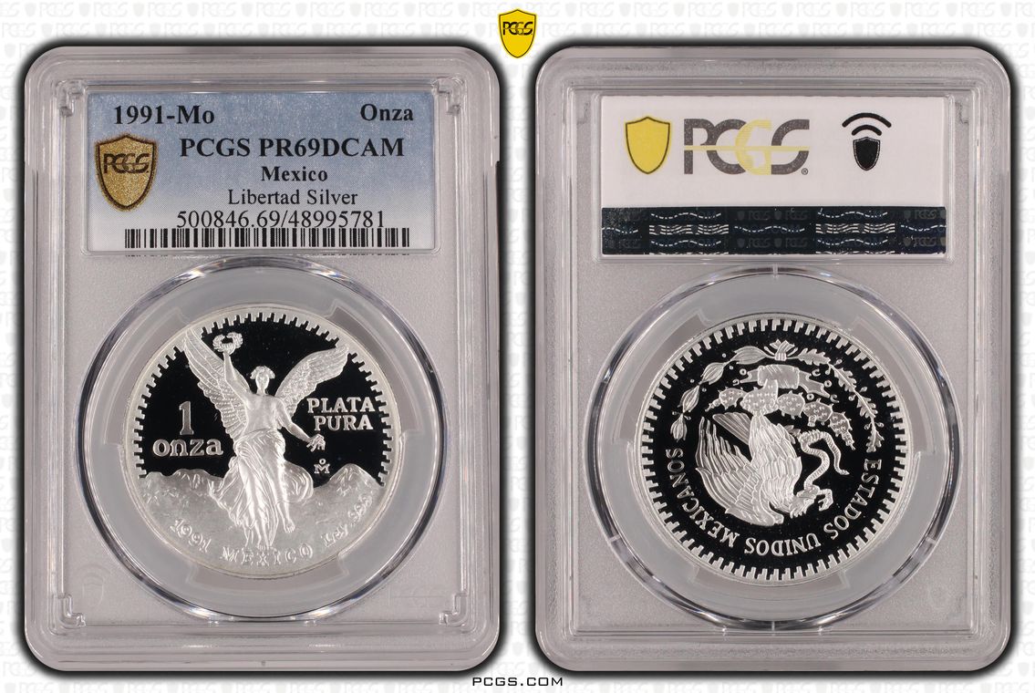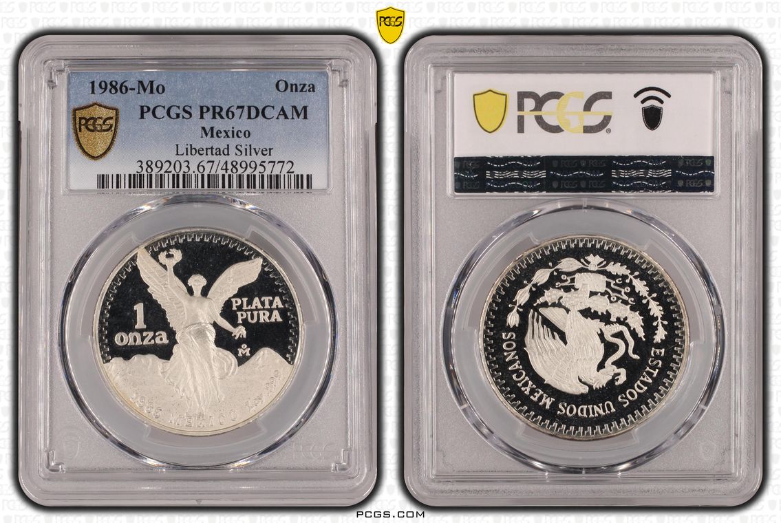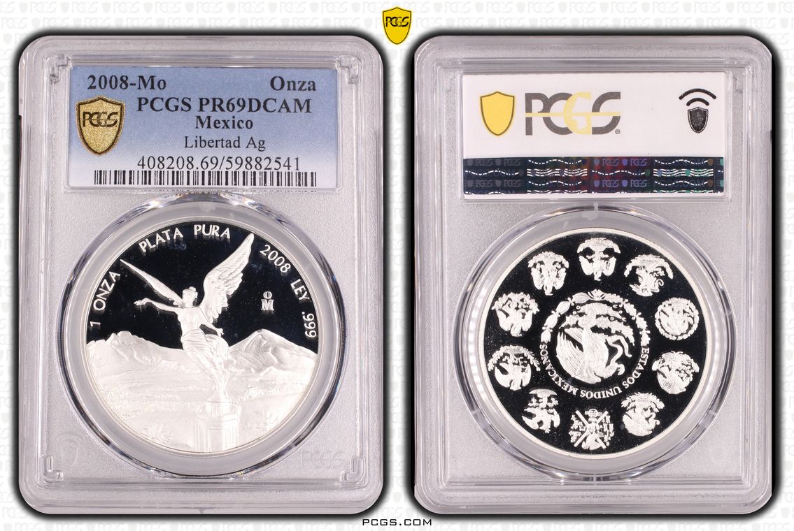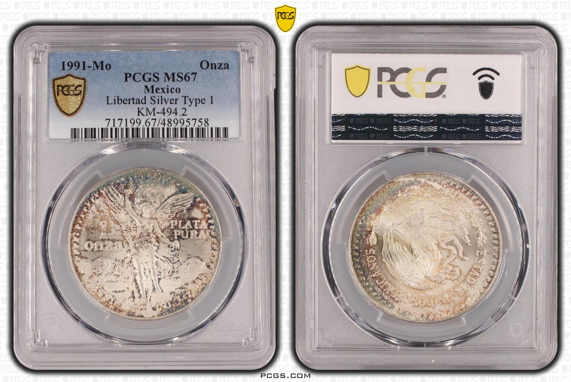 PCGS White Mexico label. Holder shows cracks on the reverse, but is still intact. No milk spots or other comments.