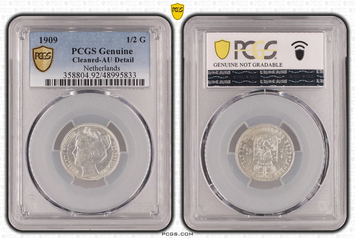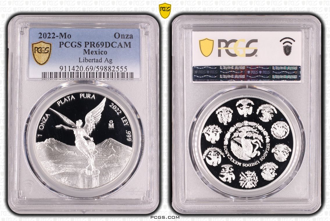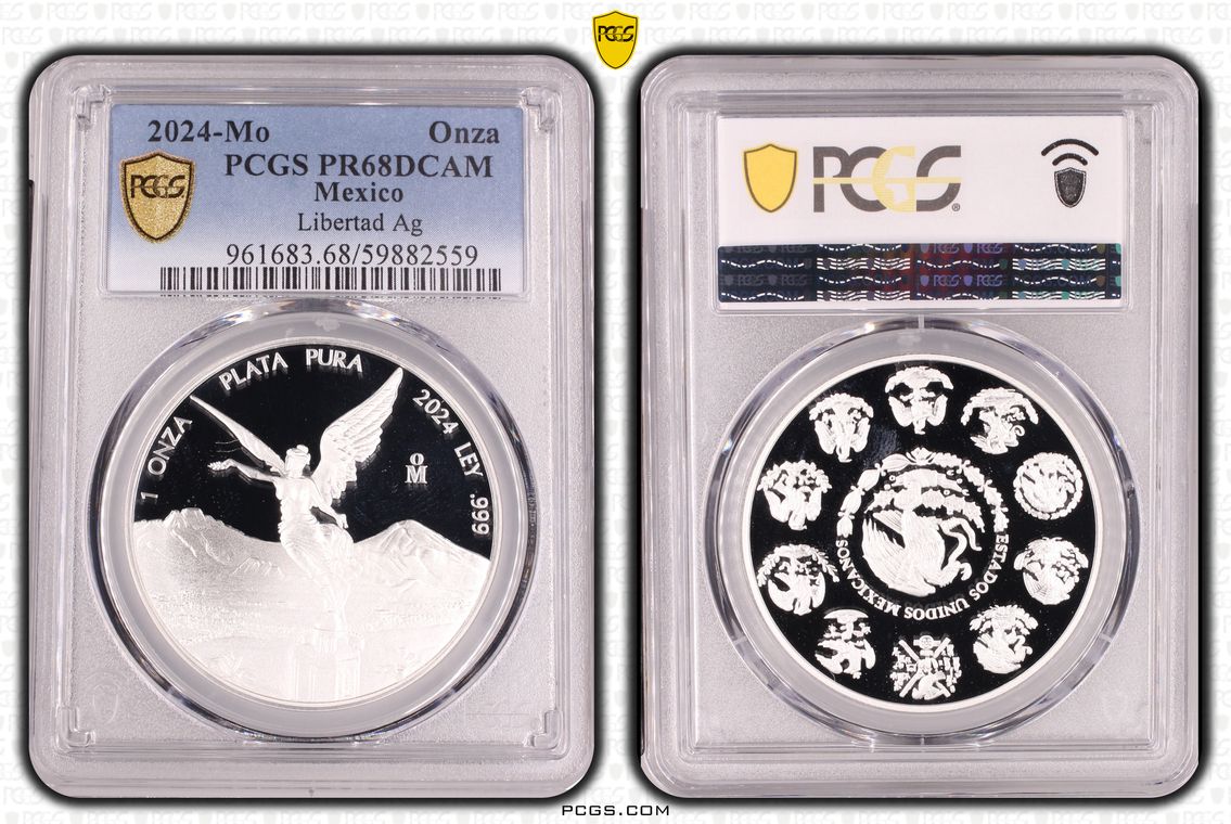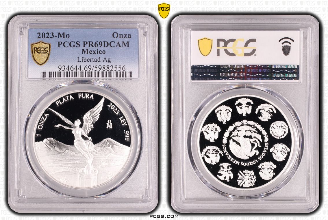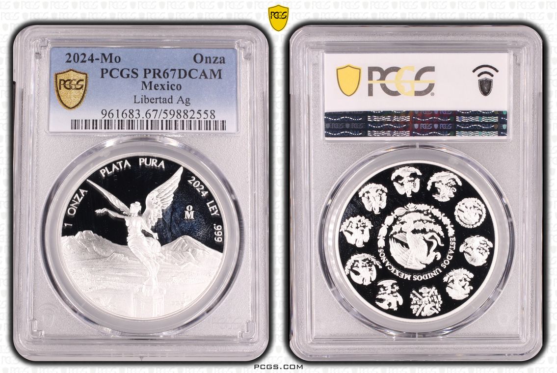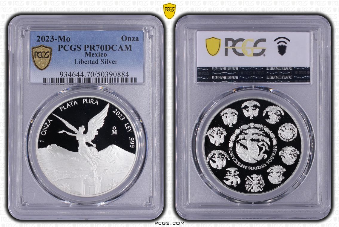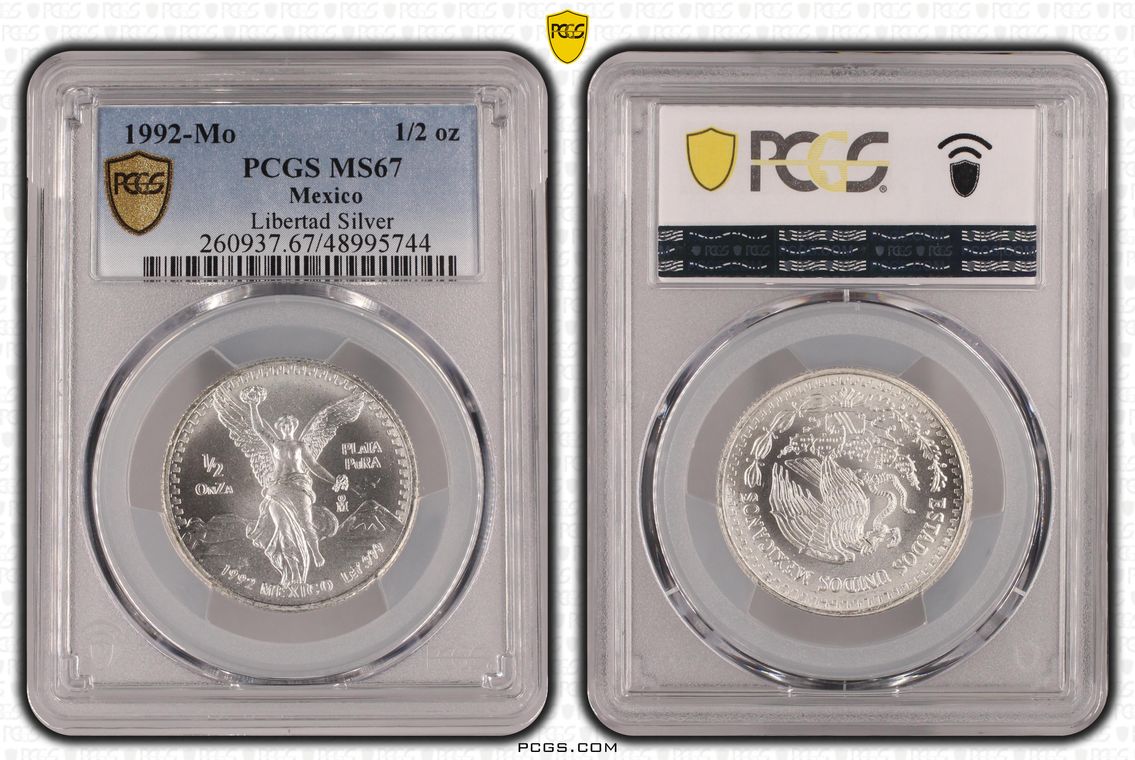 PCGS White Mexico label. Holder shows cracks on the reverse, but is still intact. No milk spots or other comments.