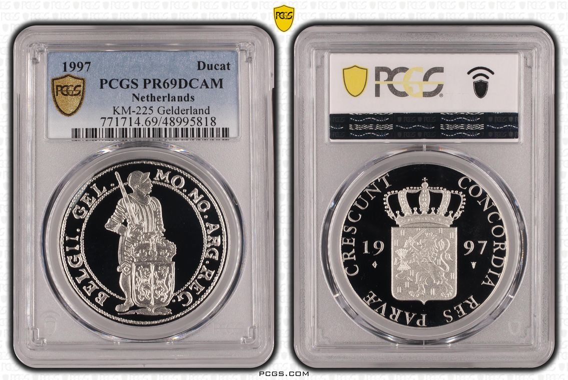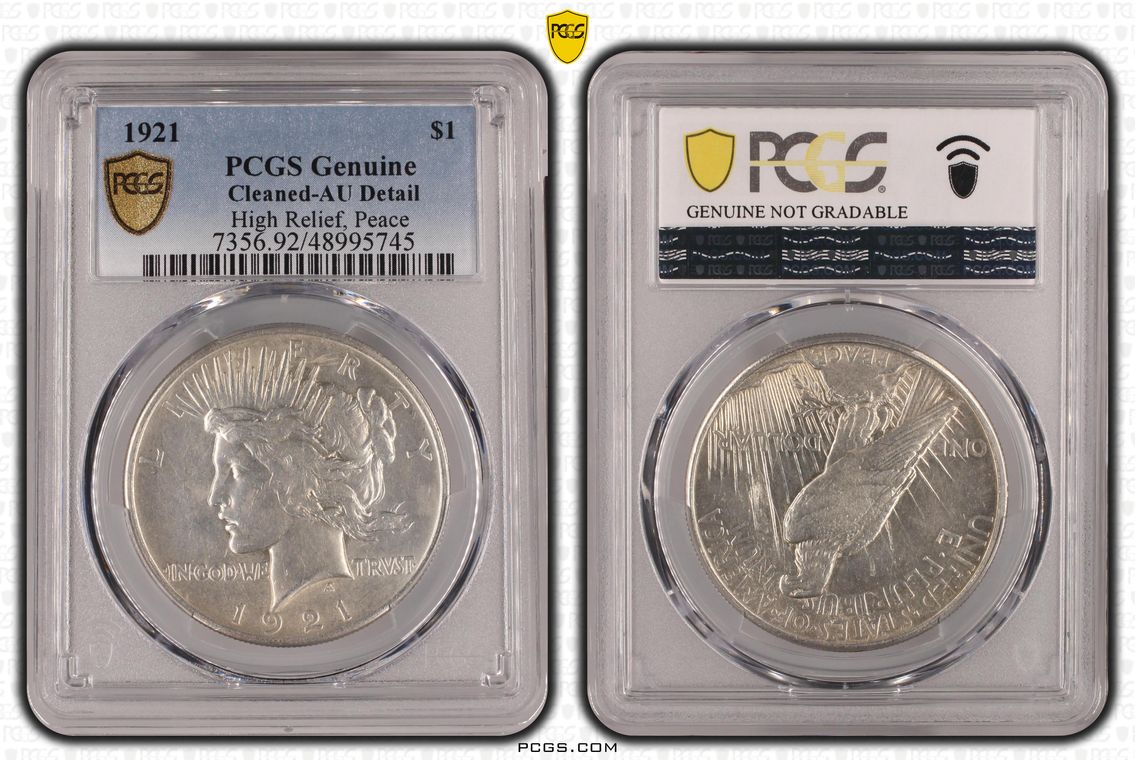 PCGS encapsulated this one a little rotated. One very light milk spot below left wing obverse. No other comments.