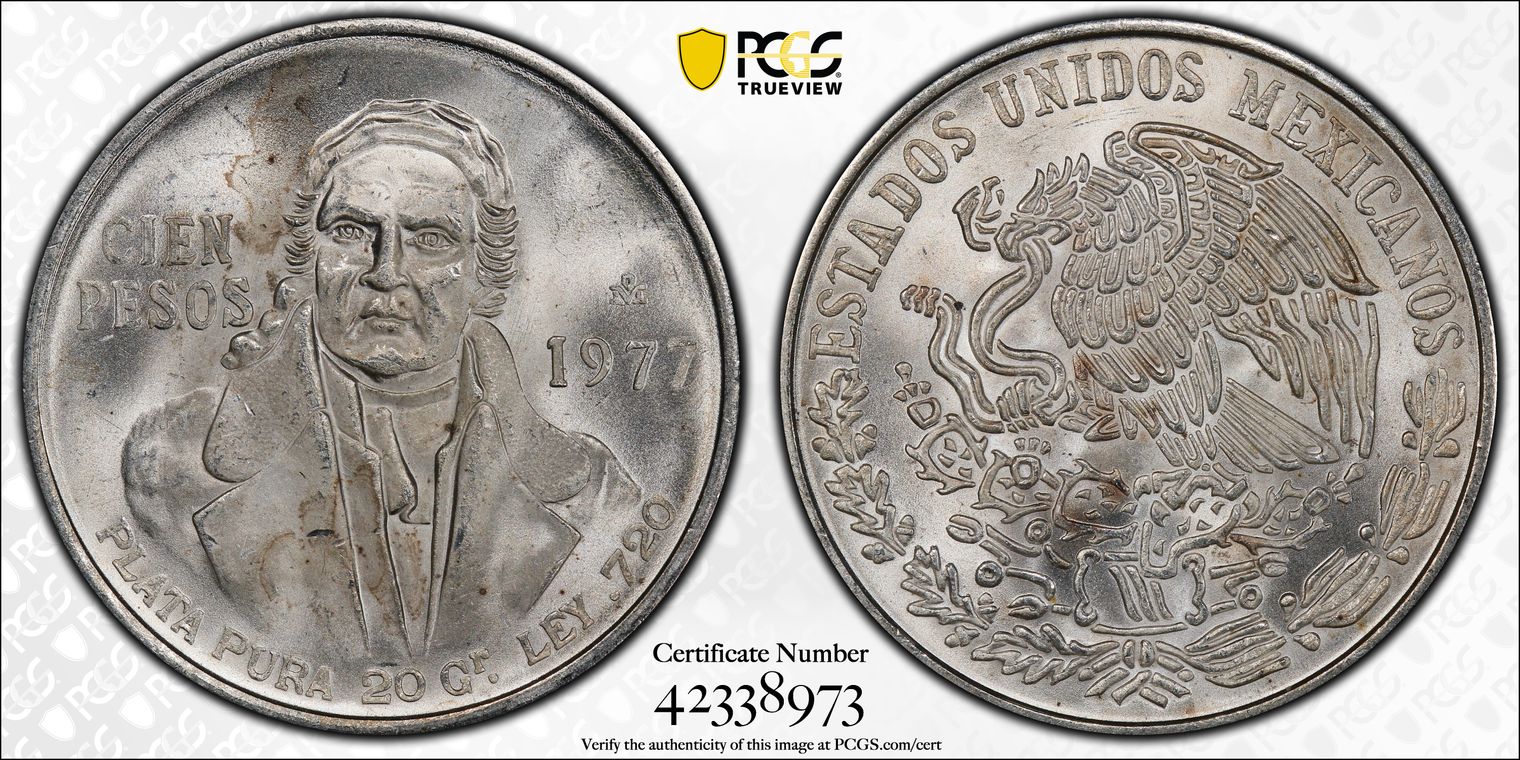 PCGS White Mexico label. No milk spots or other comments.