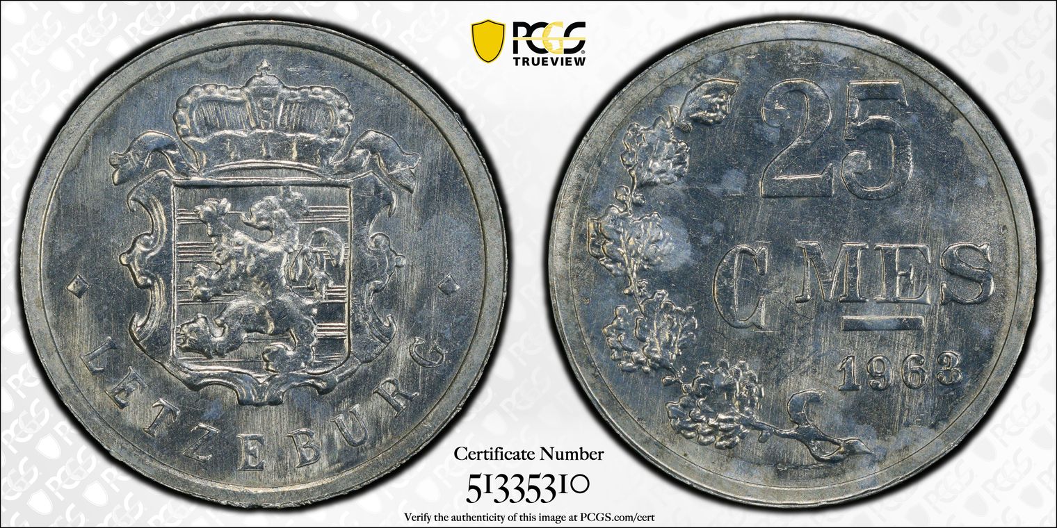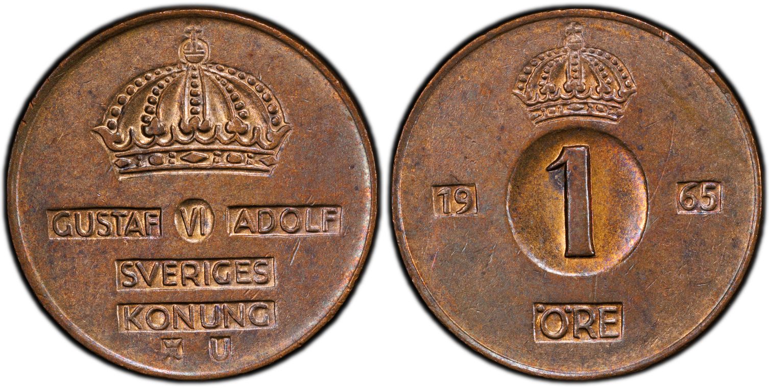 France 1 Centime (Stainless Steel), 15mm / 1.65 g. This MS68 example is a Top Pop. The very small centime coin was minted in Paris from 1961 to 2001, including 47.834 million struck in 1965. The coin is representative of the designs of the chief engraver of the Paris mint, Raymond Charles Joly-Clare, who specialized in engraving steel and was known for his ear of wheat and innovative cursive lettering. Joly's design signature (a small owl) can also be seen on coins issued by French Polynesia, Madagascar, Monaco, Gabon, Brazil, and Djibouti. The 1965 coin was struck during the Fifth French Republic under its first President, Charles de Gaulle, who led the Republic from 1959 until his retirement in 1969. The obverse depicts an ear of wheat surrounded with the cursive lettering: "république française" (French Republic). The reverse depicts the number "1" is surrounded with date and the cursive lettering "centime".