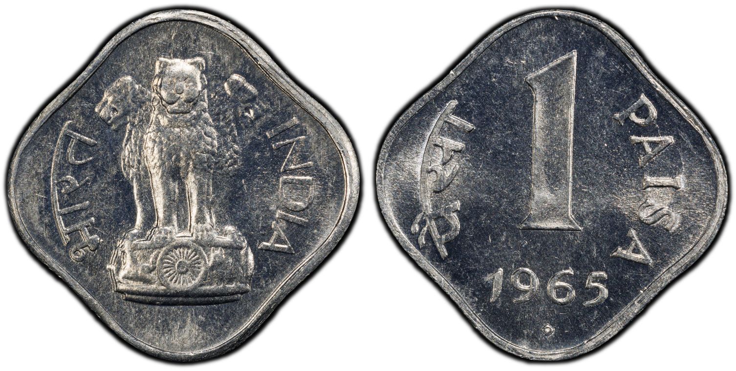 Burma 25 Pyas, Copper-Nickel (75% Copper, 25% Nickel), 24.1mm. Myanmar's currency is the Kyat which is subdivided into 100 Pyas upon decimalisation in 1952. 26M of theses 25 Pyas six notch scalloped business strikes were minted at the Royal Mint, London UK in 1965. In 1966, Myanmar redesigned all its coins to feature Aung San (leader of the country's struggle for independence from British rule) on the obverse and switched the metal to aluminum. In 1989 the country changed its official English name from the "Socialist Republic of the Union of Burma" to the "Republic of the Union of Myanmar" and began minting coins in 1991 under the name "Central Bank of Myanmar" and in 1999 Kyat denomination coins replace Pyas. The obverse of this 1965 coin features the Burmese half-lion half-dragon under the motto "Union of Burma" with the Burmese era date (1328 BE) below. The reverse depicts the denomination and date.