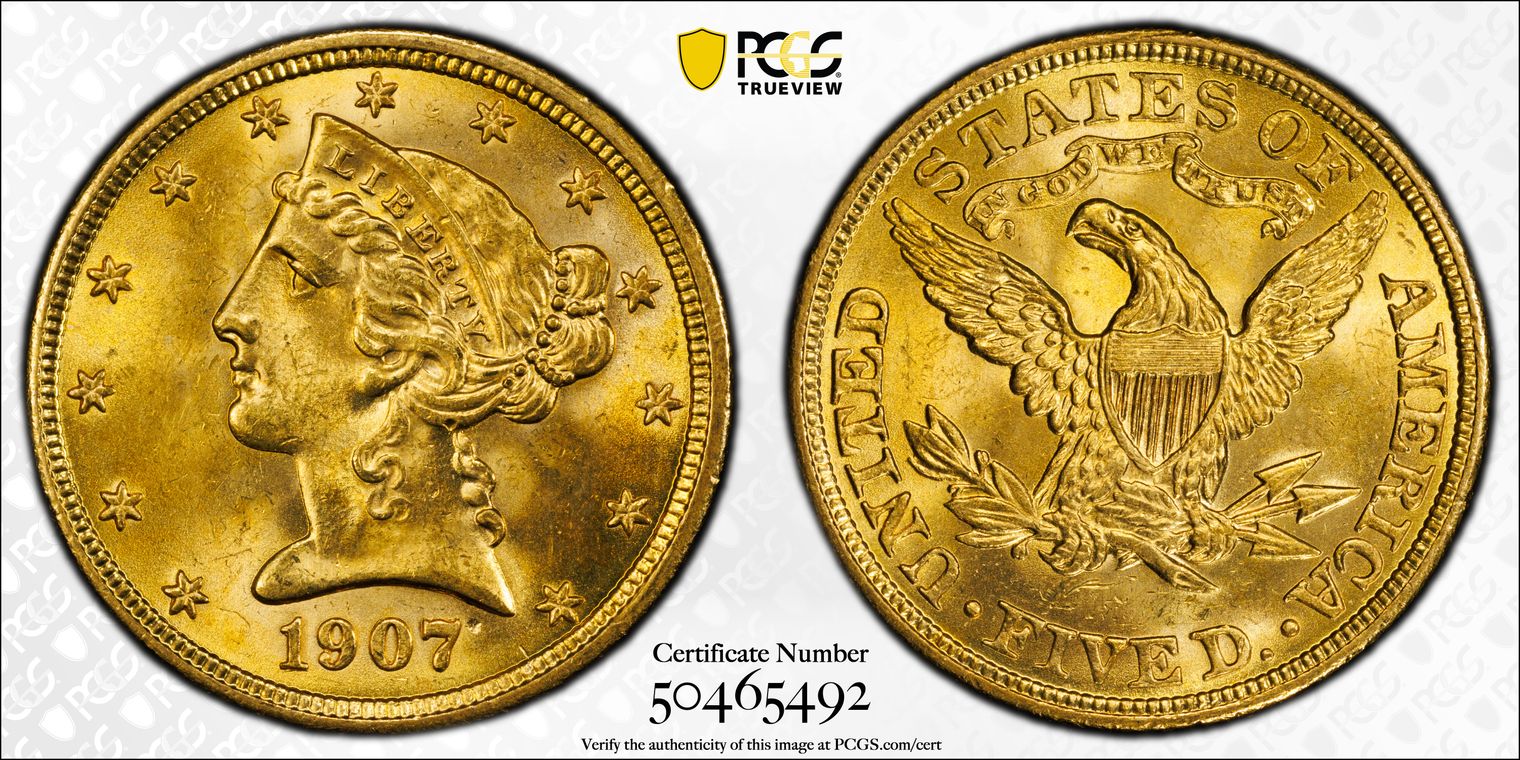 1907 $5 MS64+