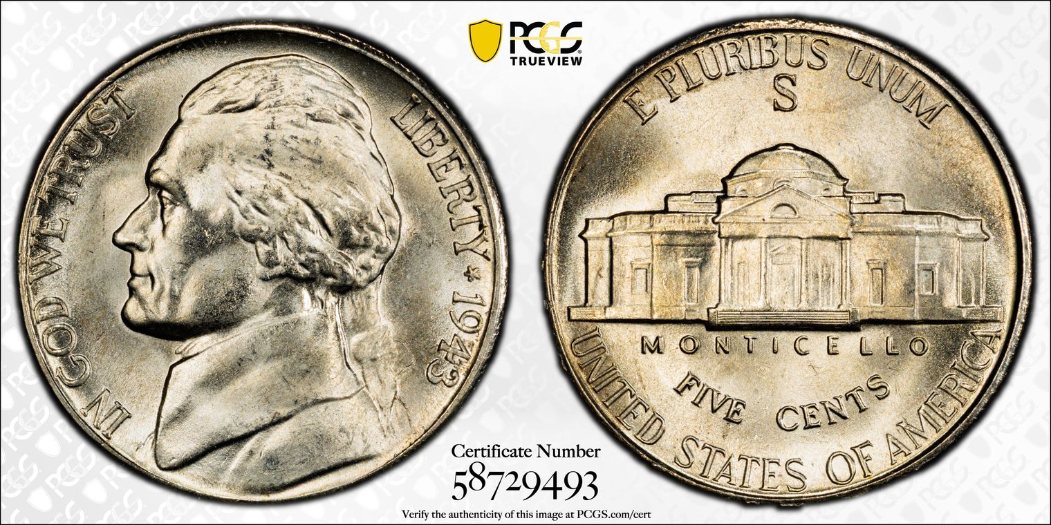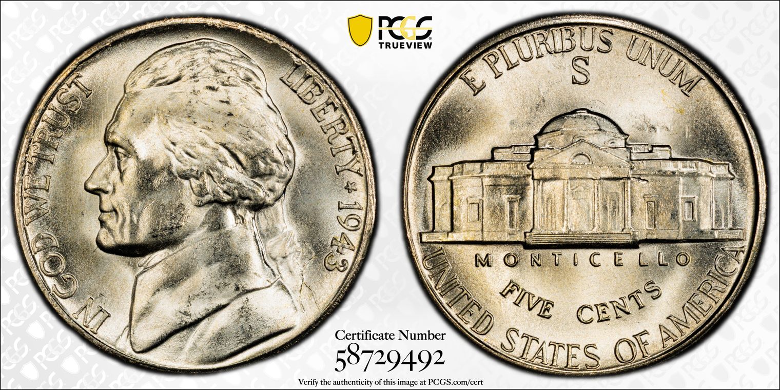 1943-S 5C MS65FS