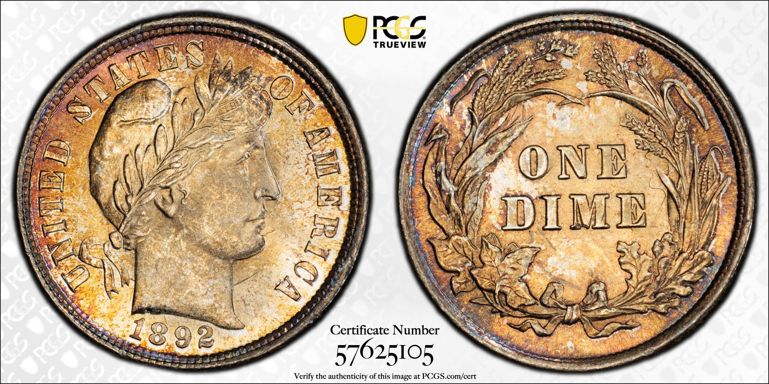 1892 10C MS64+