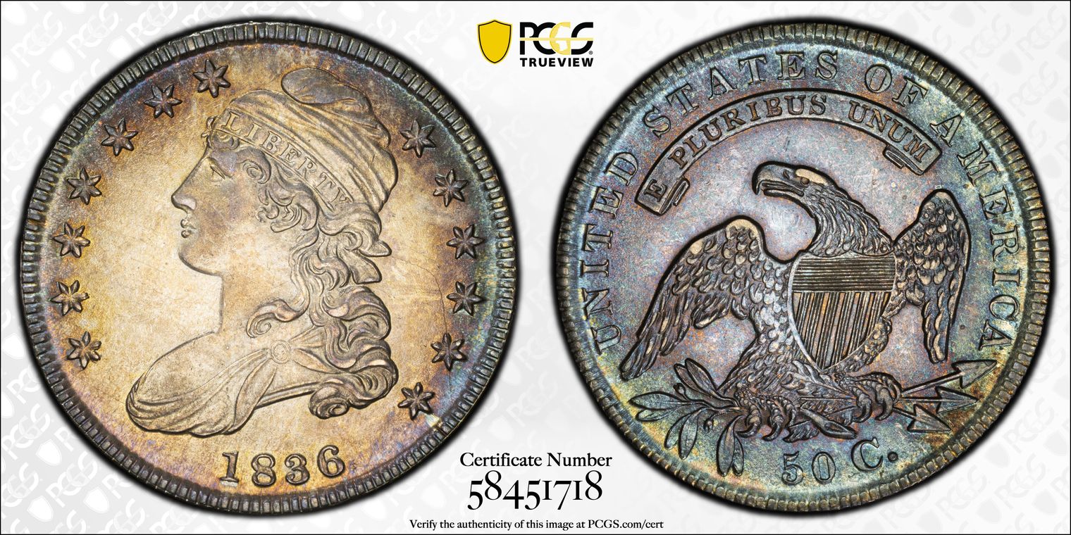 1836 50C Lettered Edge MS62