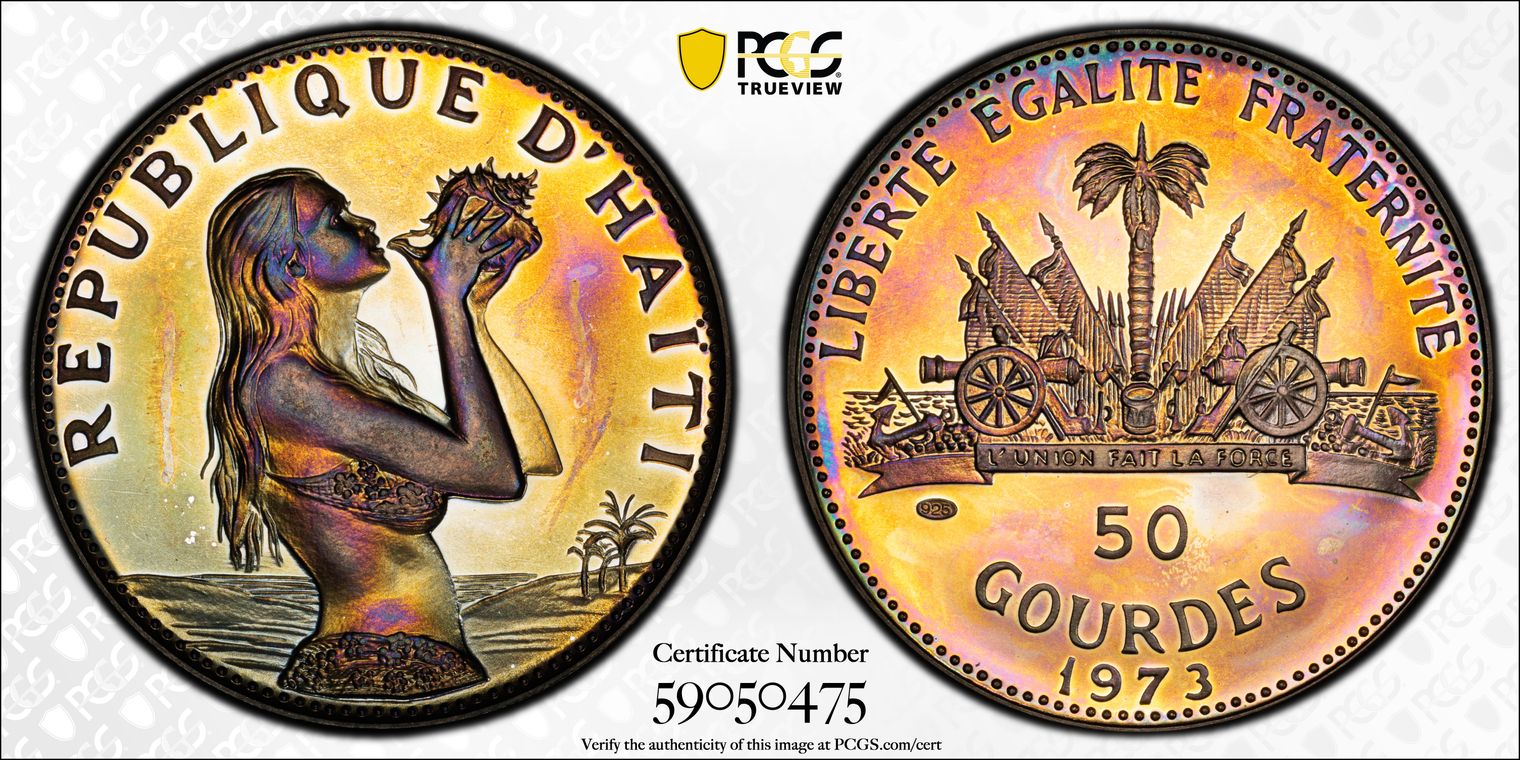 I found this coin raw at a coin show, and the color/luster combo caught my eye. I eventually submitted this coin for grading so I could build this set. The blue around the devices is eye catching. The TrueView makes the coin look dull, scroll to my images to get the actual look (photo of raw coin).