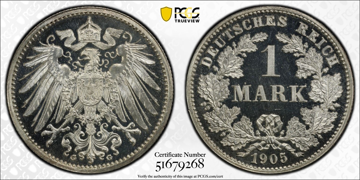 German 1 Mark Large Eagle Reverse Date Set, Proof (1892-1915)
