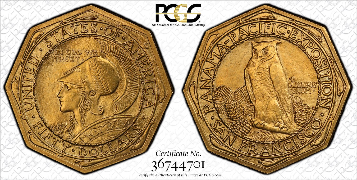1915-S $50 Panama-Pacific, Octagonal MS64+