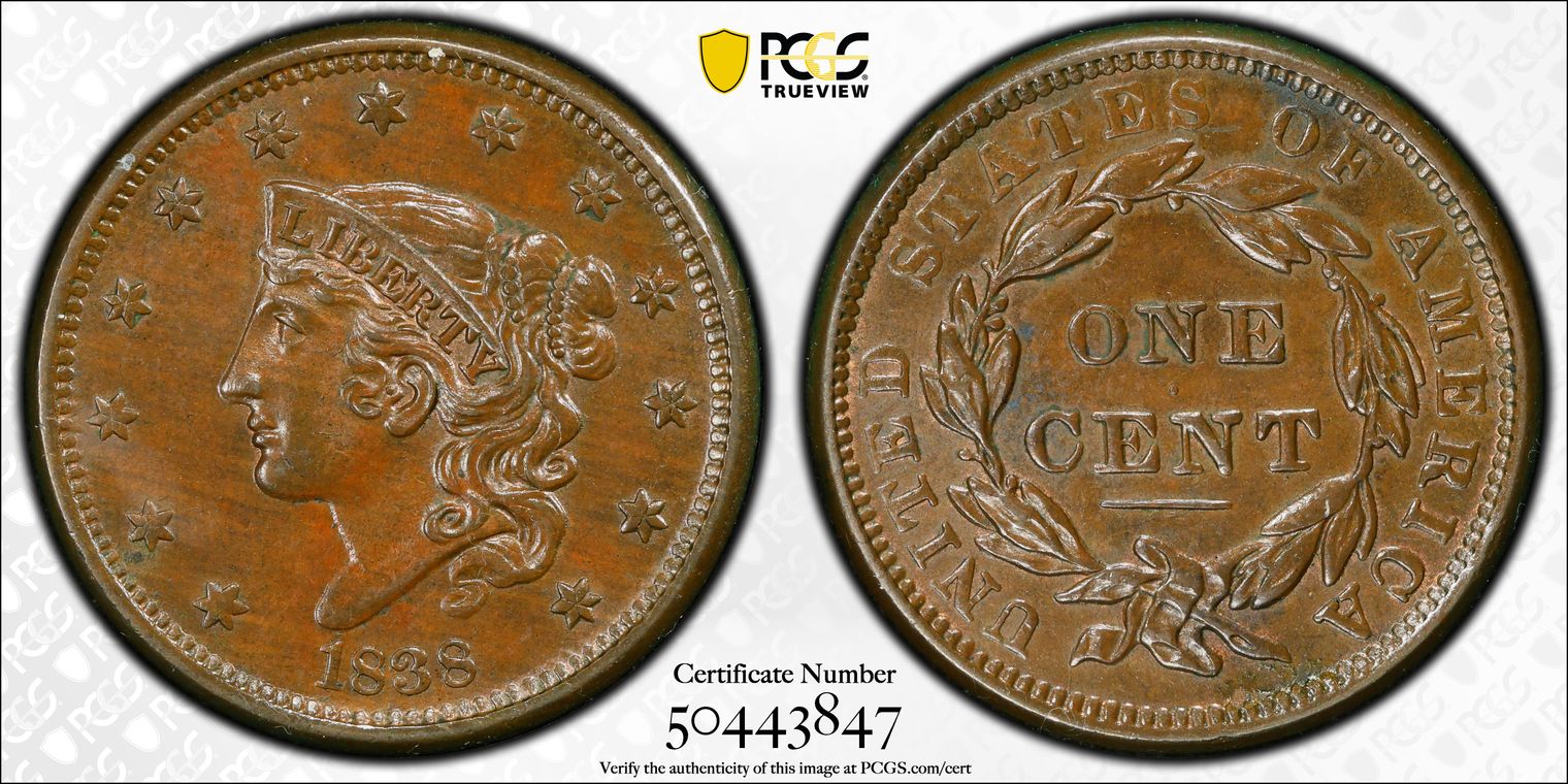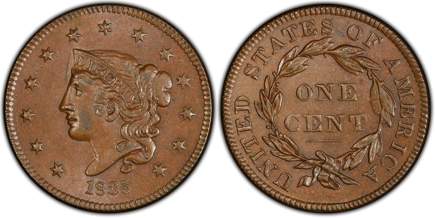 1835 1C N-8, Head of 1836 AU58BN