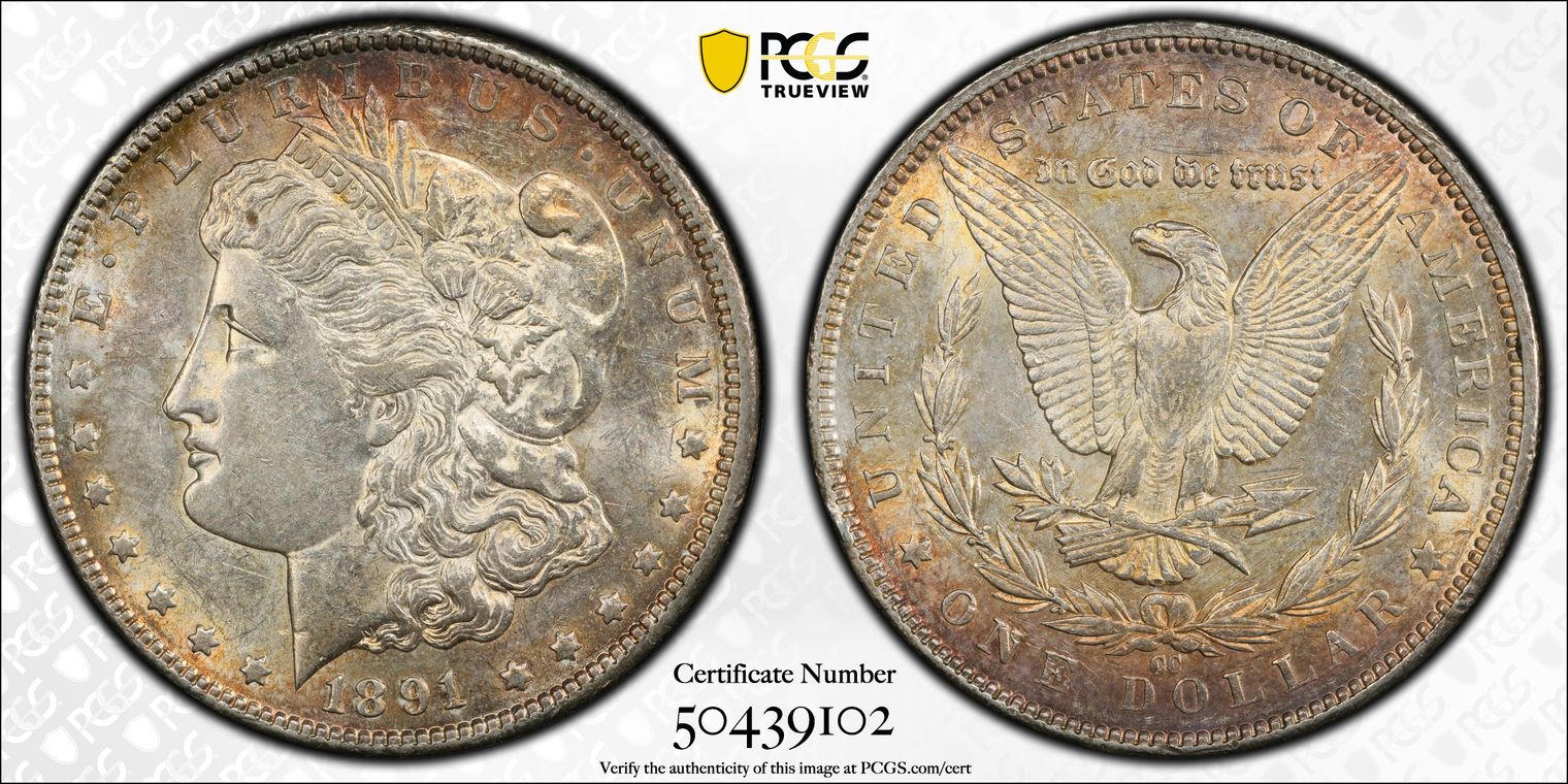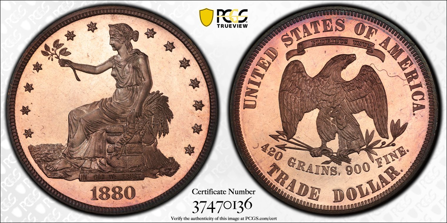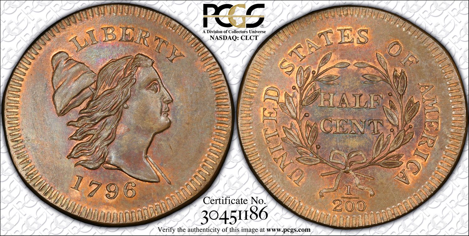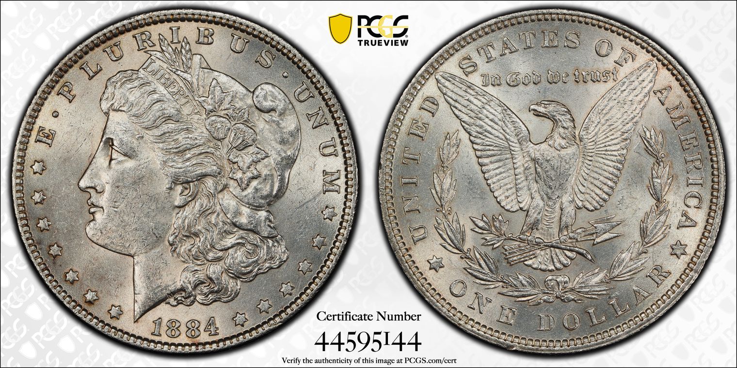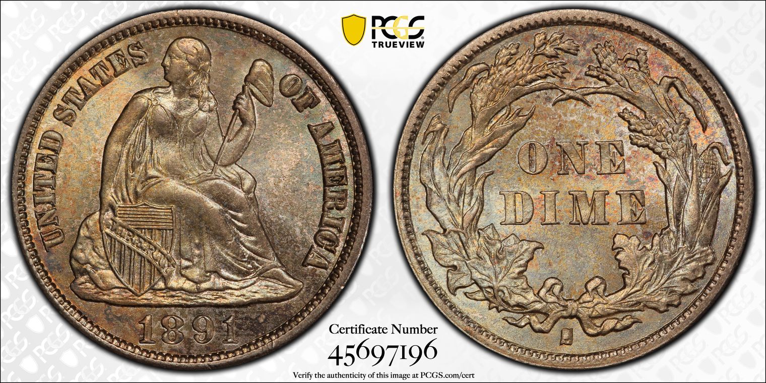 Ex. Gerry Fortin Collection. Long Flag 1, F105a. From FGRC description: "The 1869 Philadelphia issue was produced with two different date punch styles, the Short Flag 1 and Long Flag 1, with the latter seen on most Mint State examples. The strike is essentially complete with a partial wire rim."
