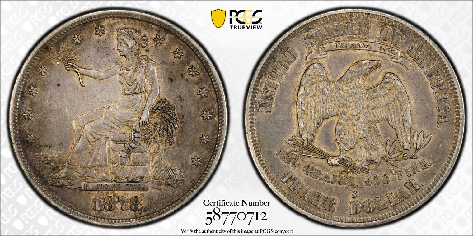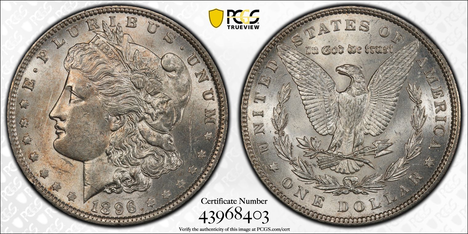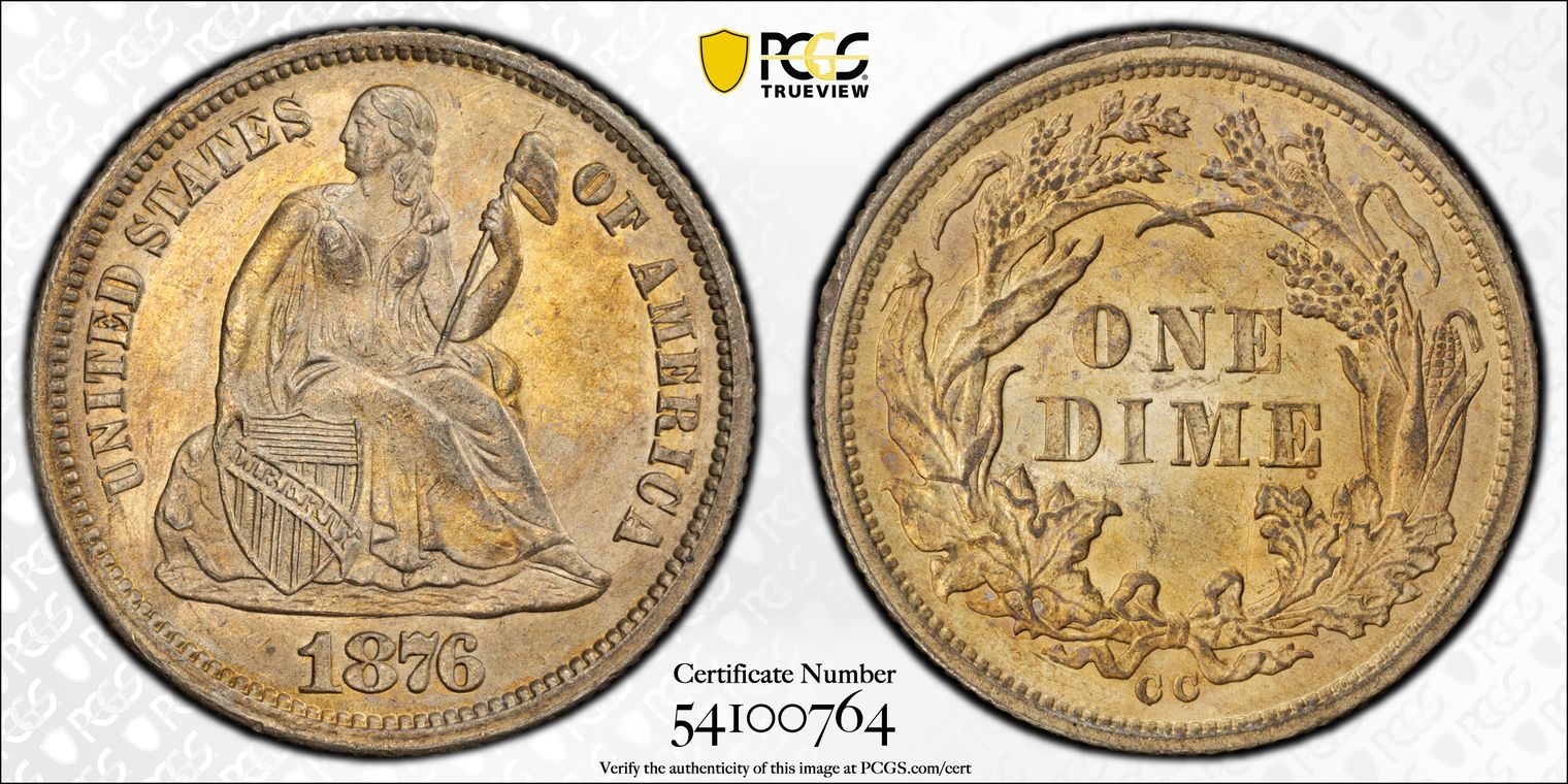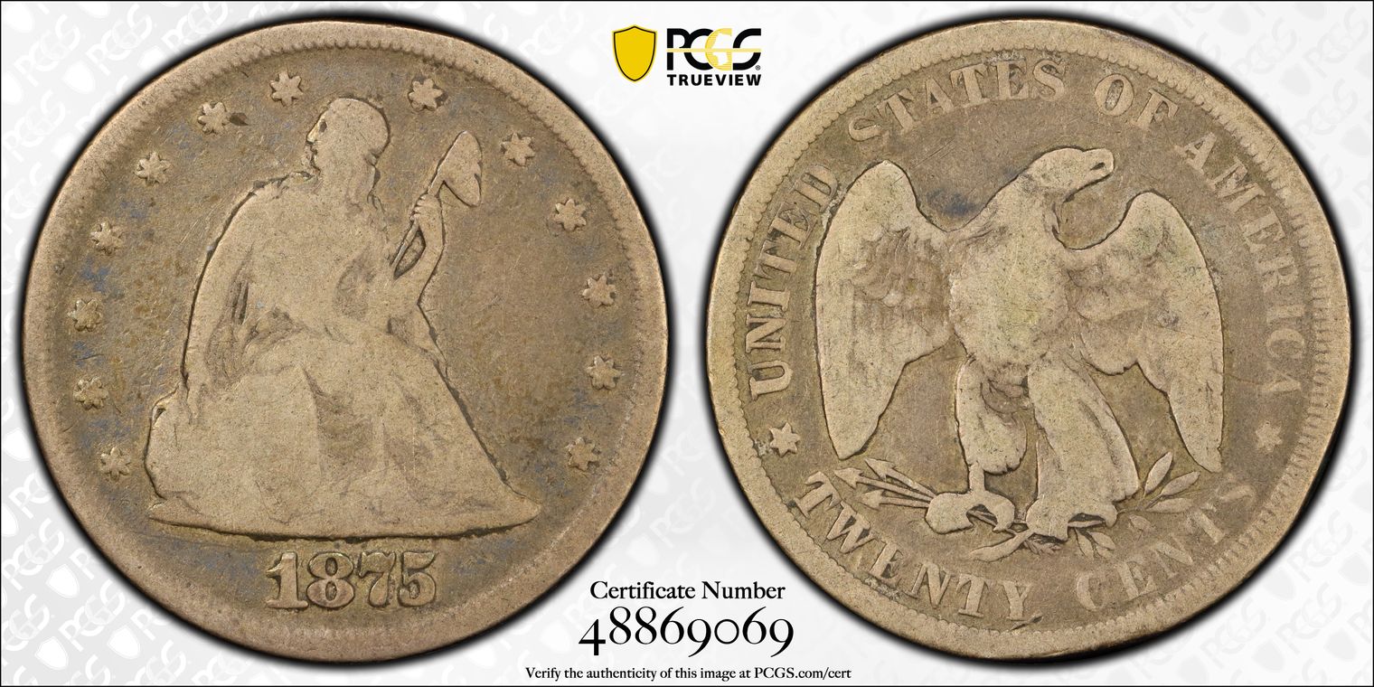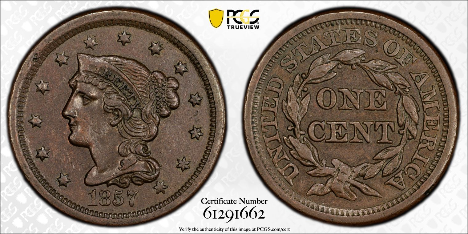 Ex. Gerry Fortin Collection. Long Flag 1, F105a. From FGRC description: "The 1869 Philadelphia issue was produced with two different date punch styles, the Short Flag 1 and Long Flag 1, with the latter seen on most Mint State examples. The strike is essentially complete with a partial wire rim."