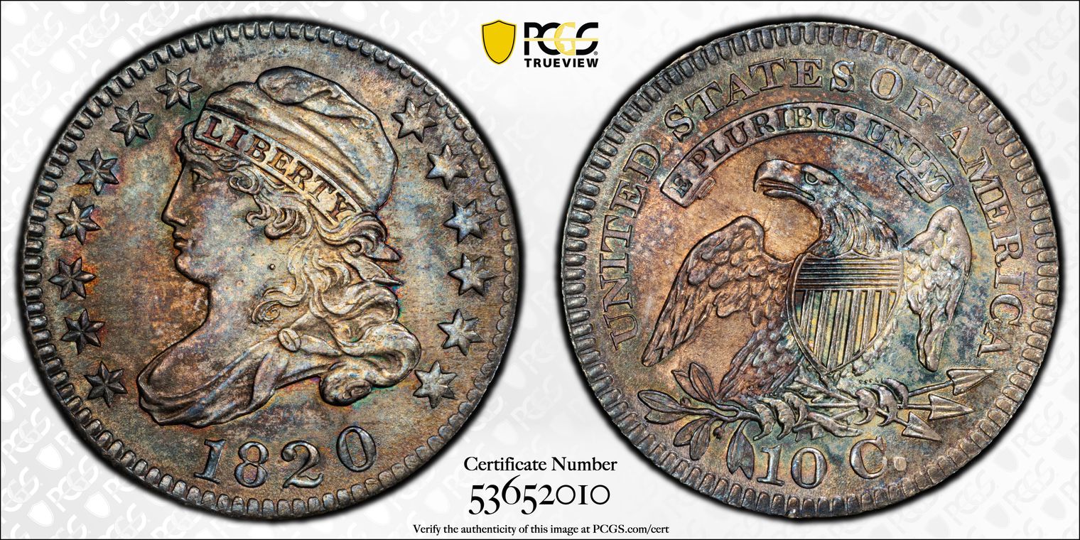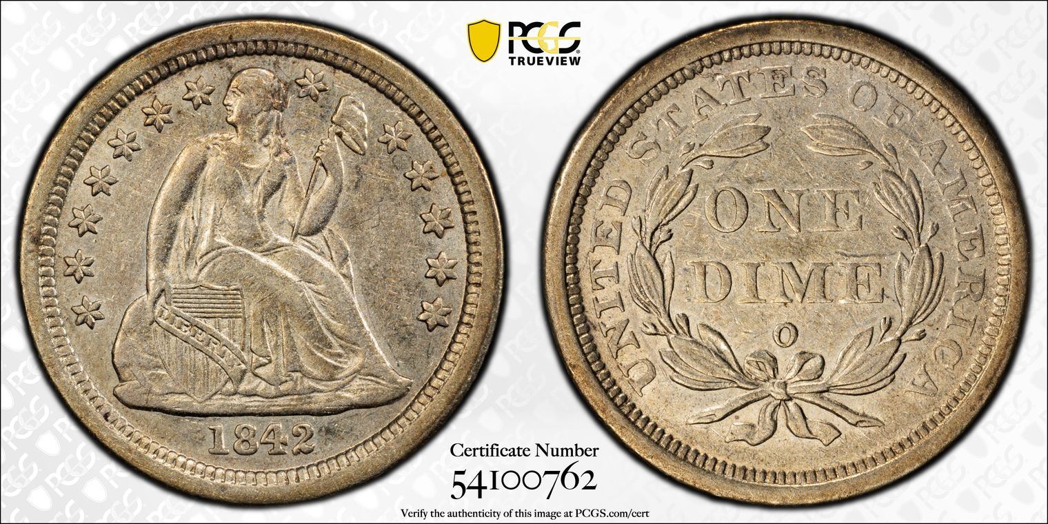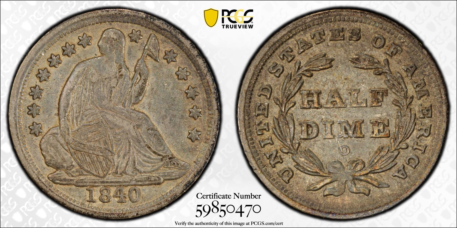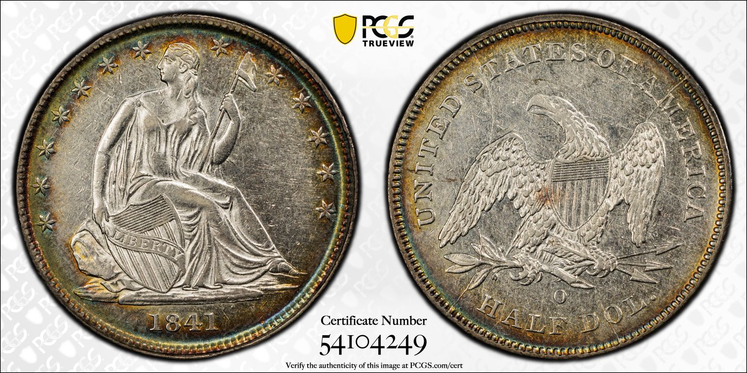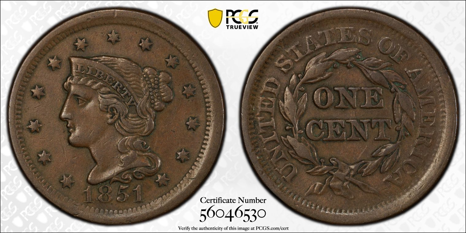 Ex. Gerry Fortin Collection. Long Flag 1, F105a. From FGRC description: "The 1869 Philadelphia issue was produced with two different date punch styles, the Short Flag 1 and Long Flag 1, with the latter seen on most Mint State examples. The strike is essentially complete with a partial wire rim."