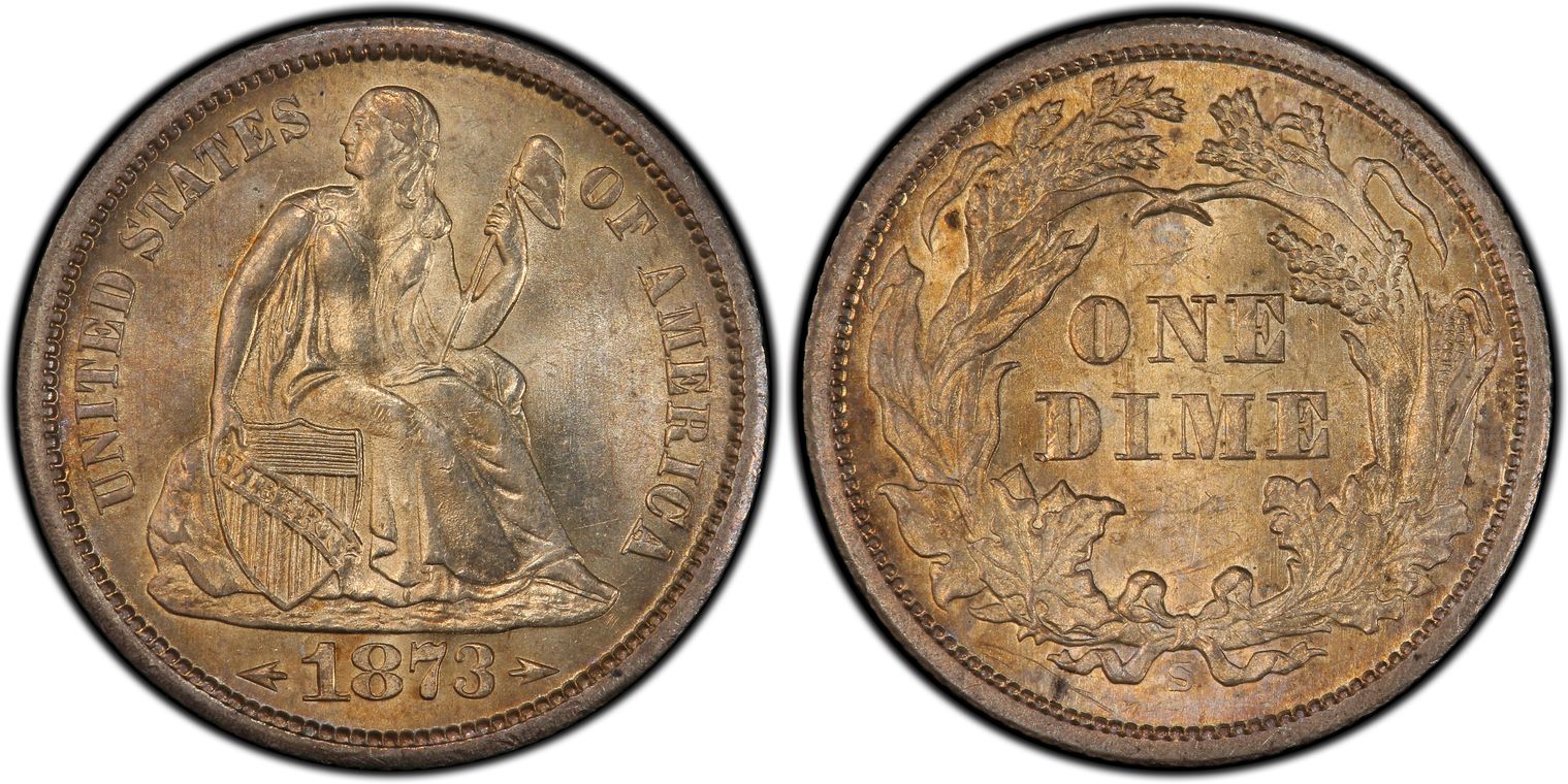 Ex. Gerry Fortin Collection. From GFRC description: "1873 No Arrows Open 3 was struck for only a short time as the Mint took steps to "open" the 3-date punch to avoid confusion with that of an 8 digit per the initial Closed 3. The reported mintage of 60,000 correlates well with the dearth of gem survivors."