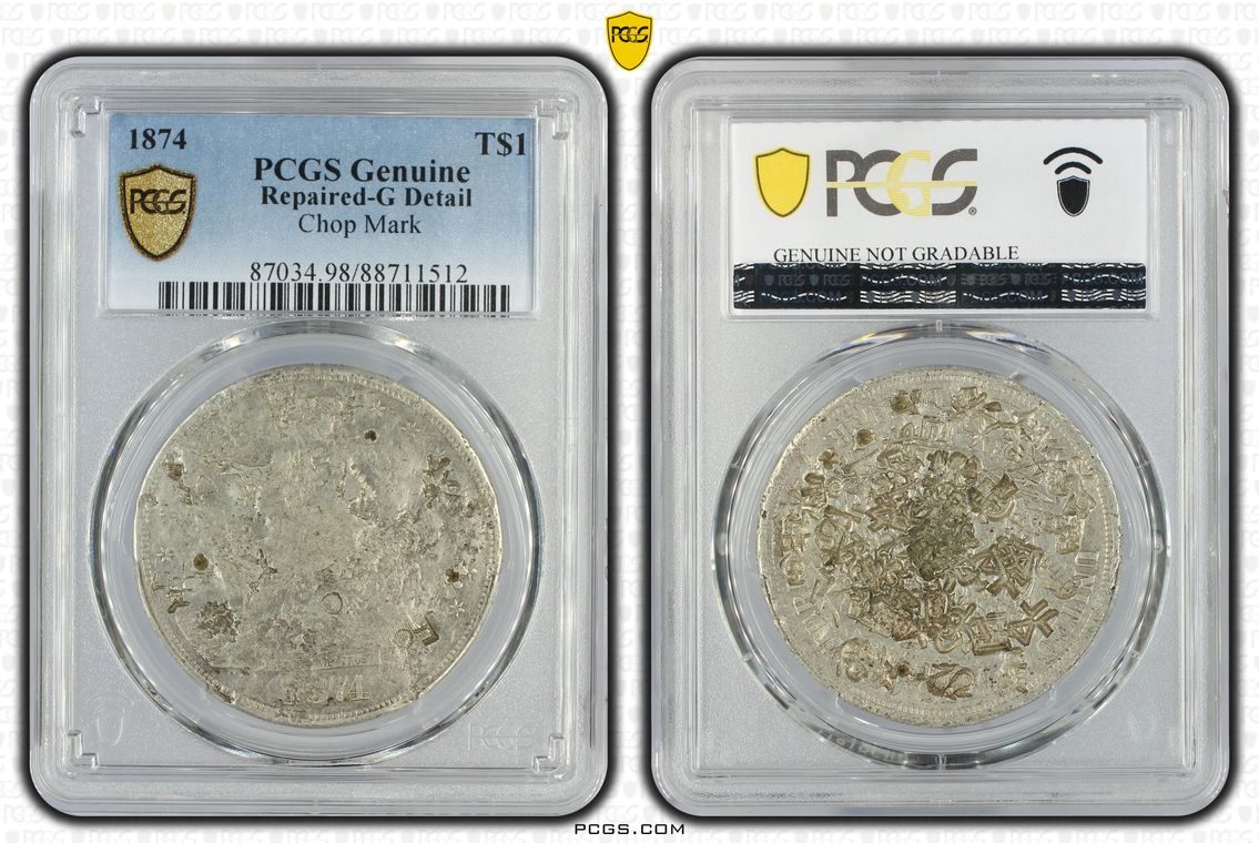 The character 大 ( dà - dài ) on the obverse is translated as big and appears to be a very popular chopmark for the year 1873 regardless of mint. On the reverse is a recessed chopmark 王 ( wáng ) meaning “king” and is also a surname. While this is a Details Grade the Non Details Grade Total Population is 47. Ex blue sofa, who obtained the coin raw and utilized the PCGS restoration program with some very nice results.
