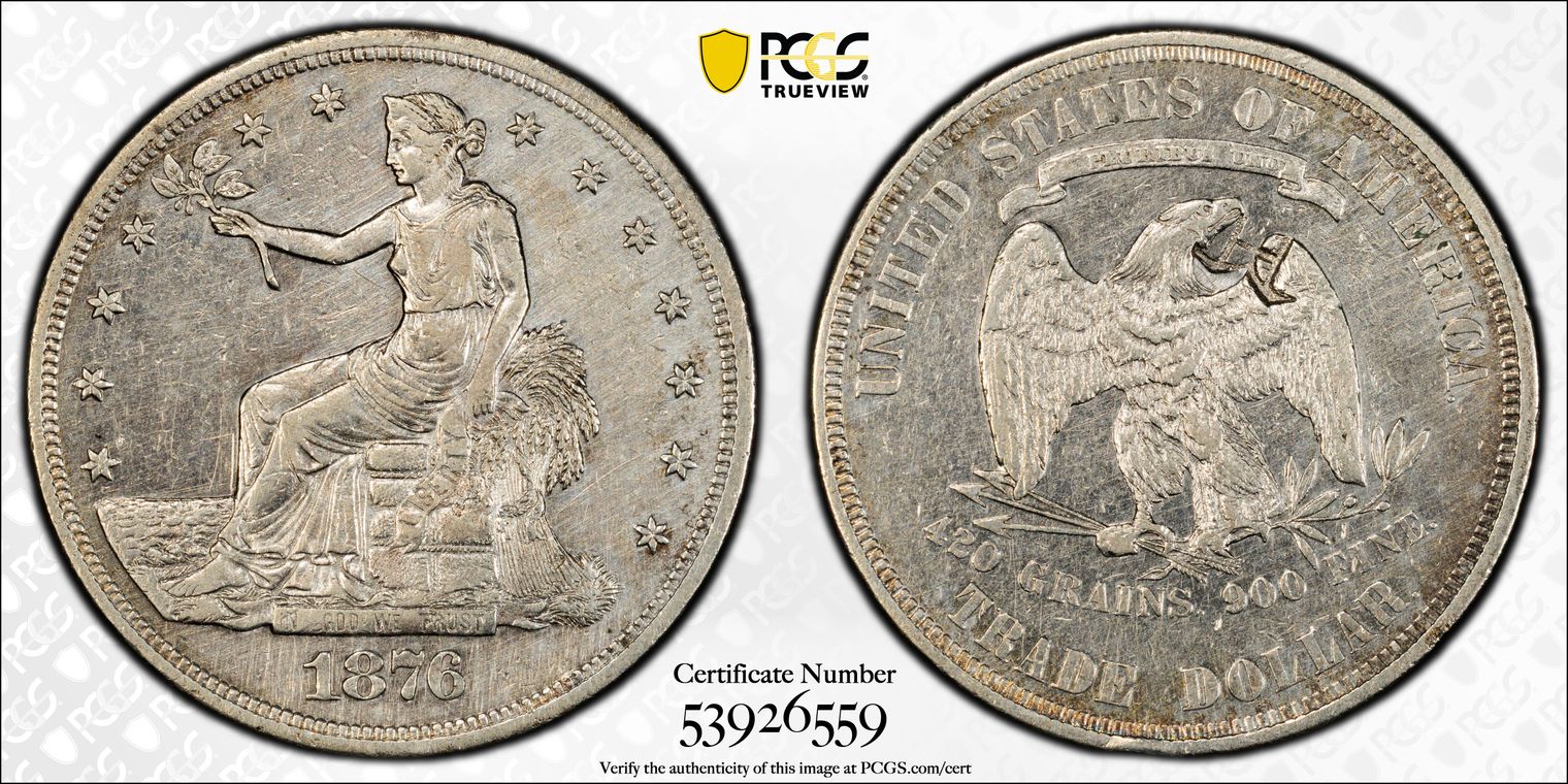 A Type I/I 1875 CC Trade Dollar recently obtained from the Stacks Bowers October 2025 Hong Kong (SAR) Showcase Auction. While an excellent straight grade with only 38 graded higher one of the reasons to acquire this coin was that it had a “proper” TrueView image.