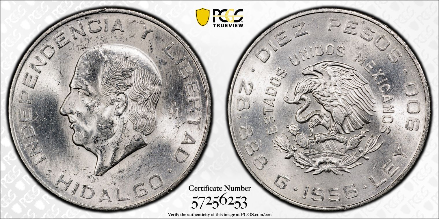 1956-Mo 10 Peso Hildago KM-474 Ag MS63