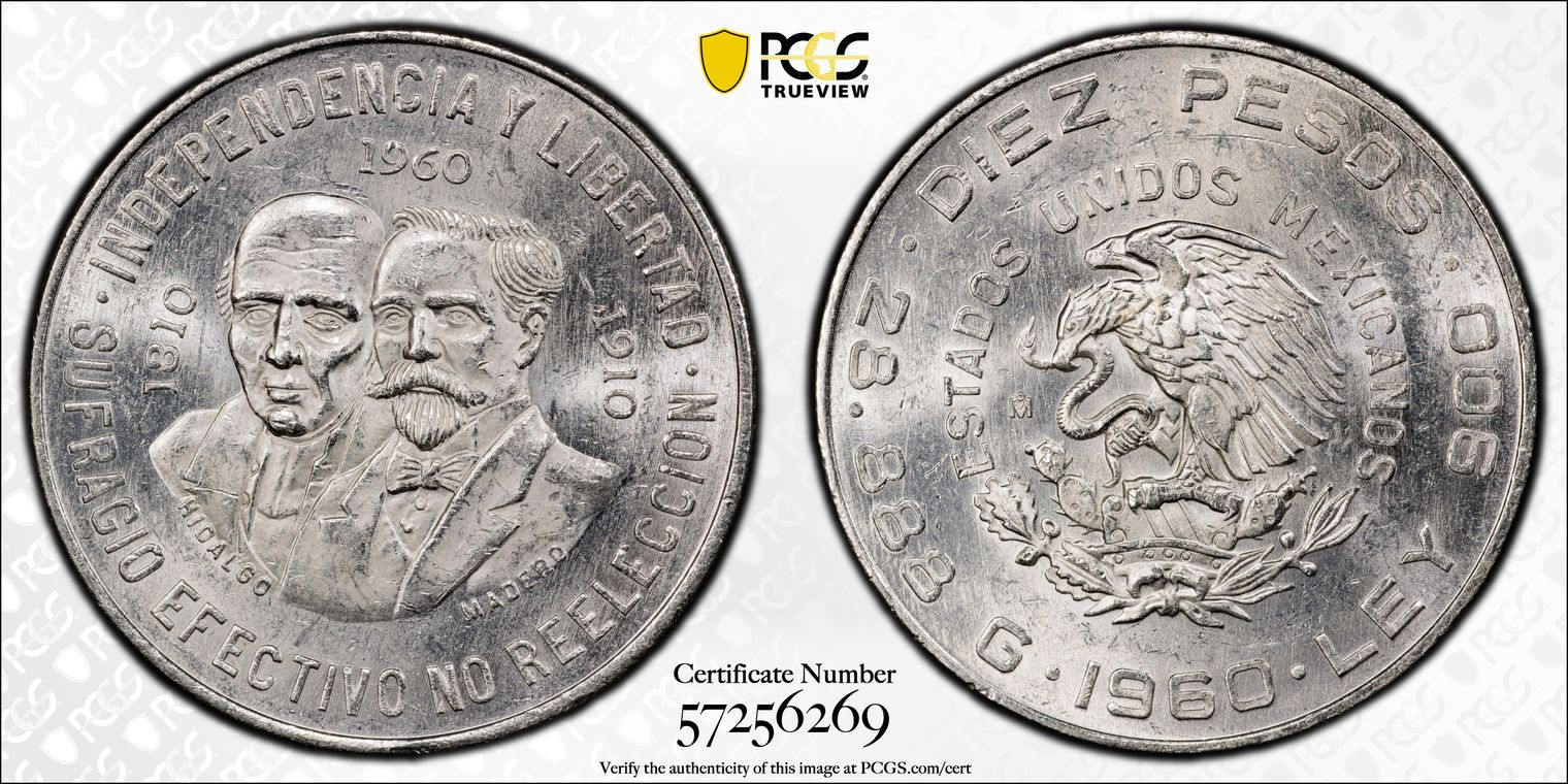 1960-Mo 10 Peso 150th Anniversary KM-476 Ag MS63