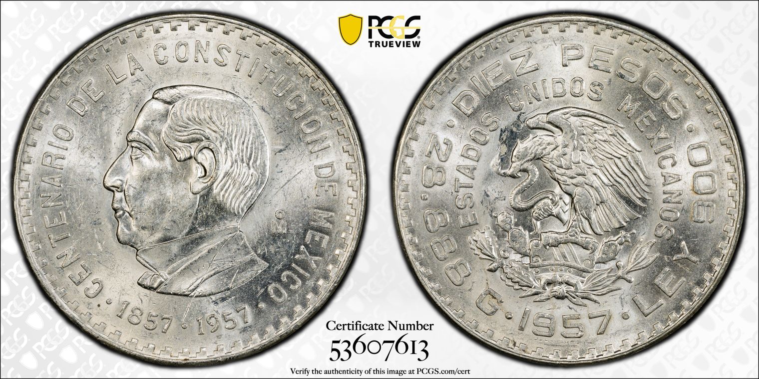 1957-Mo 10 Peso Constitution KM-475 Ag MS61