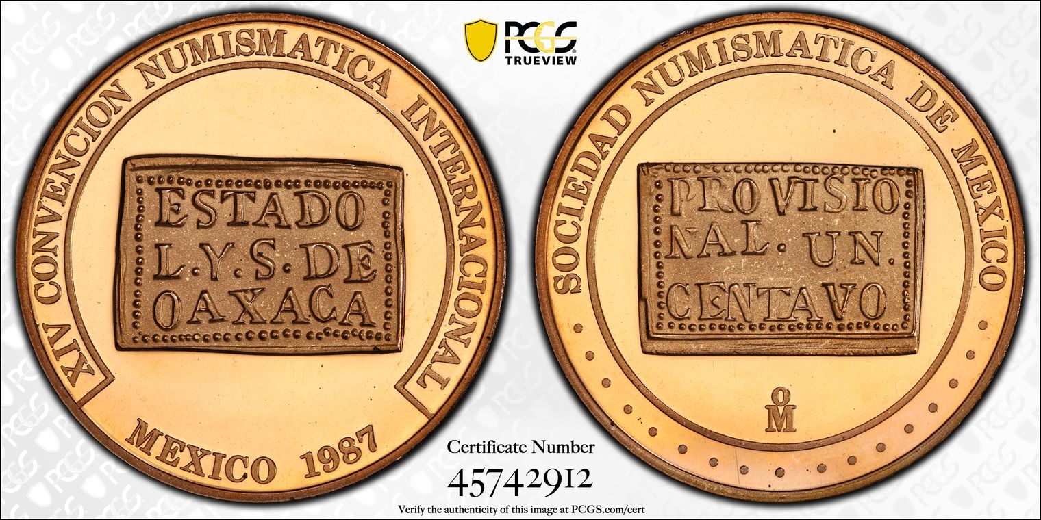 1987-Mo Medal Numismatic Society Ae (1915) 1C Oaxaca SP66RD