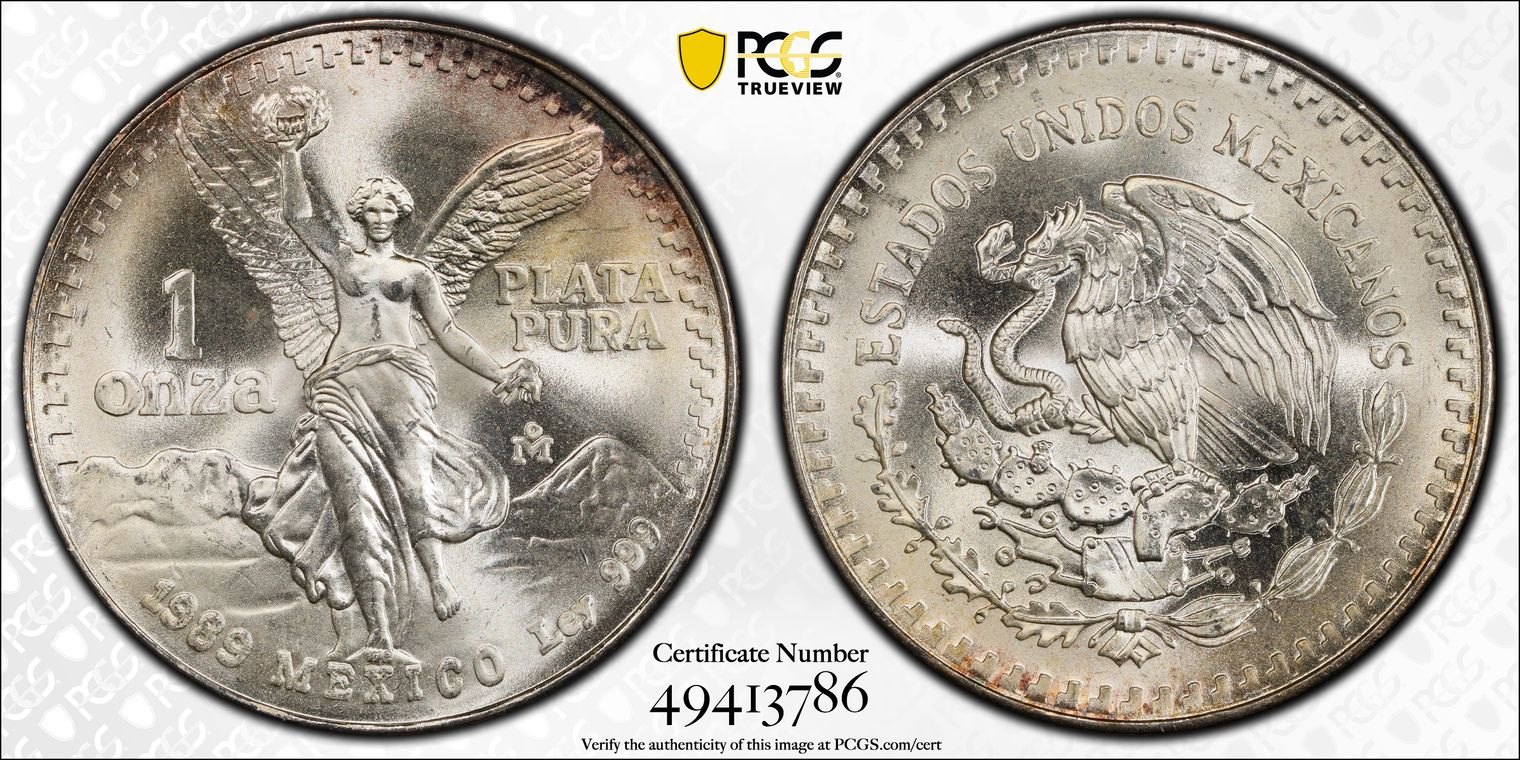 1989-Mo Onza Libertad Ag w/o Dot 999 MS68