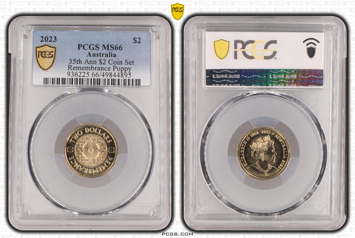 2023 $2 35th Ann $2 Coin Set Remembrance Poppy MS66