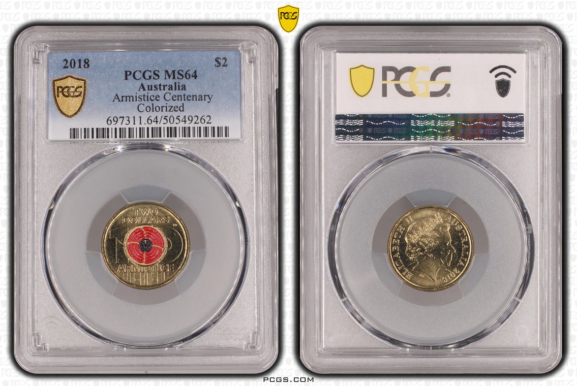 2018 $2 Armistice Centenary Colorized MS64