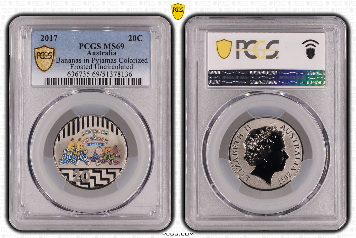 2017 20C Bananas in Pyjamas Colorized Frosted Uncirculated MS69