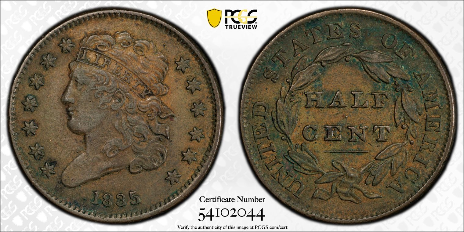1835 1/2C AU50BN