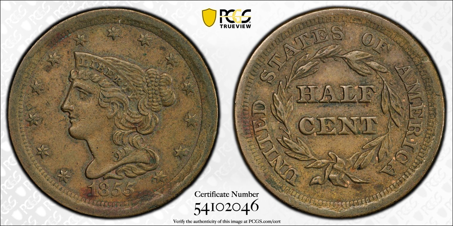 1855 1/2C MS61BN