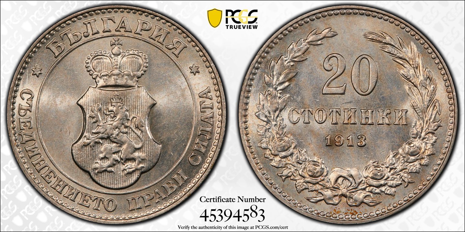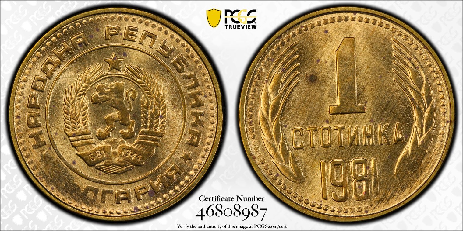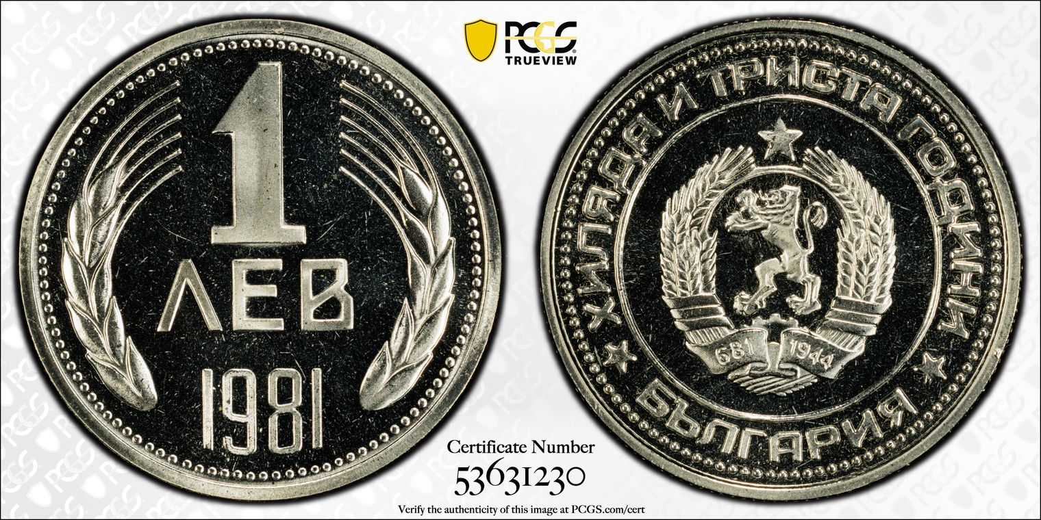 BULGARIA 1 LEV MS64 NGC POP 4/2