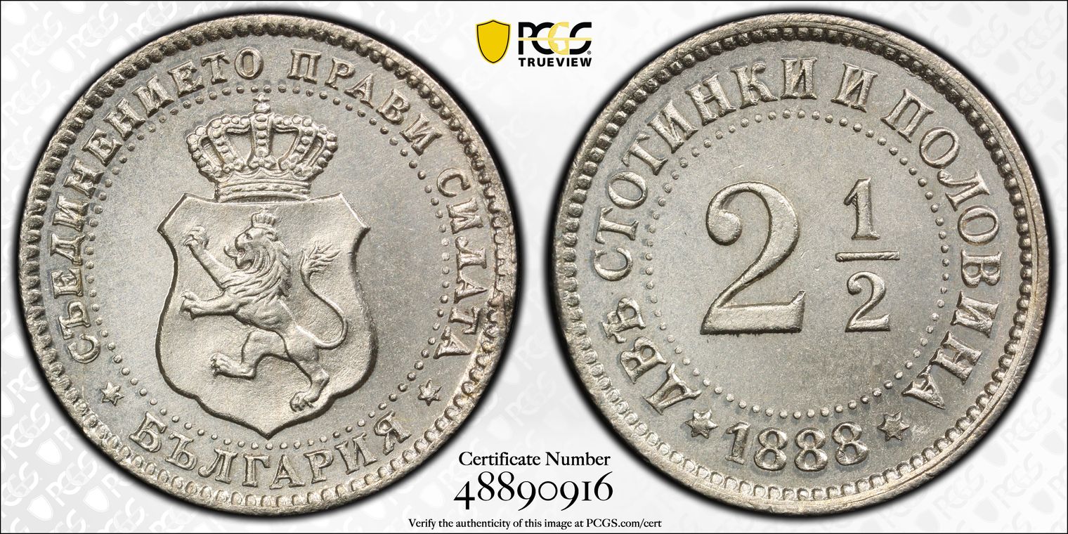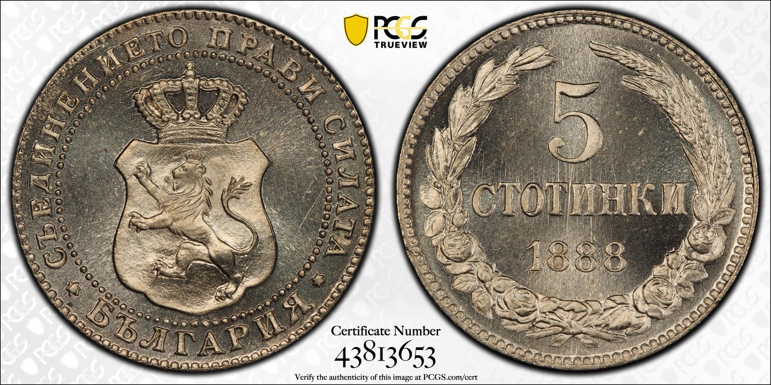 1882 BULGARIA 2L MS63 NGC POP 7/4