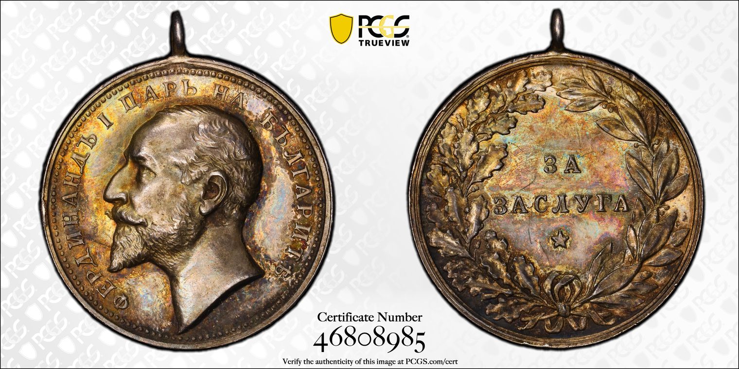 BULGARIA Award Silver Medal for Agricultural Exhibition in Plovdiv, 1892 PCGS MS64 POP 1/0