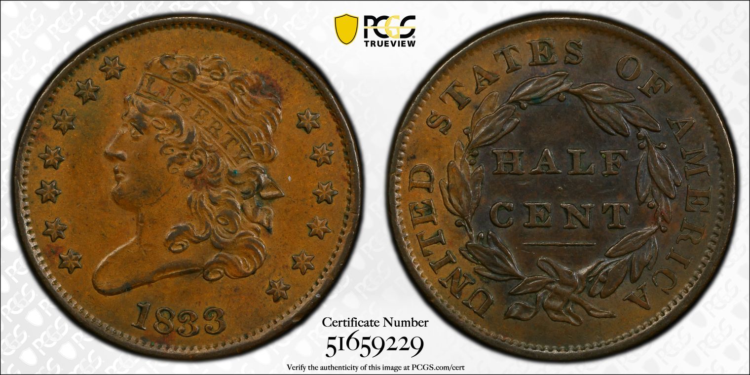1833 1/2C AU55BN