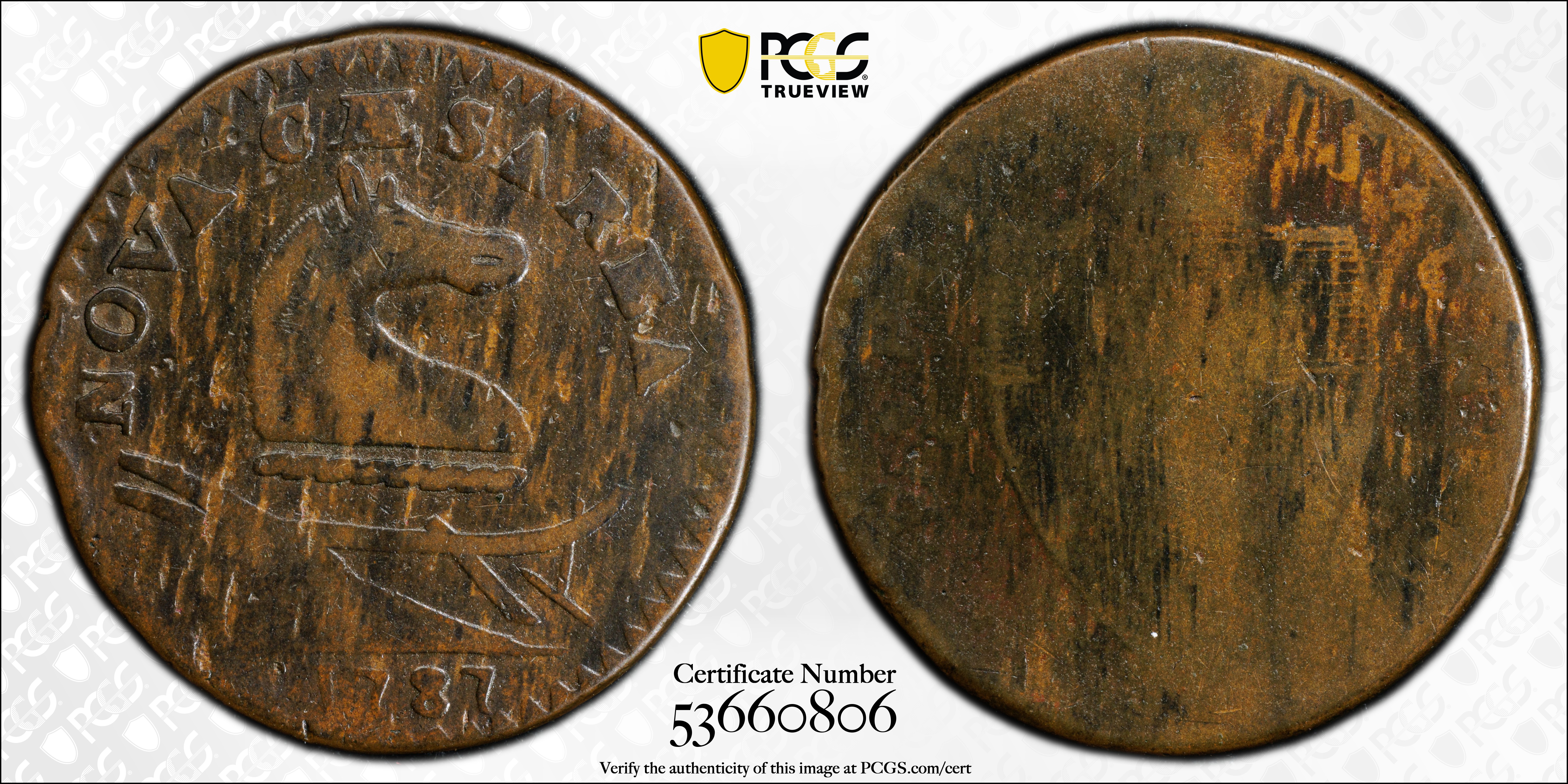 1787 NJ 1/2P Hypertrophic Ear, Maris 45-e, BN G4BN 认证号53660806, PCGS号763318