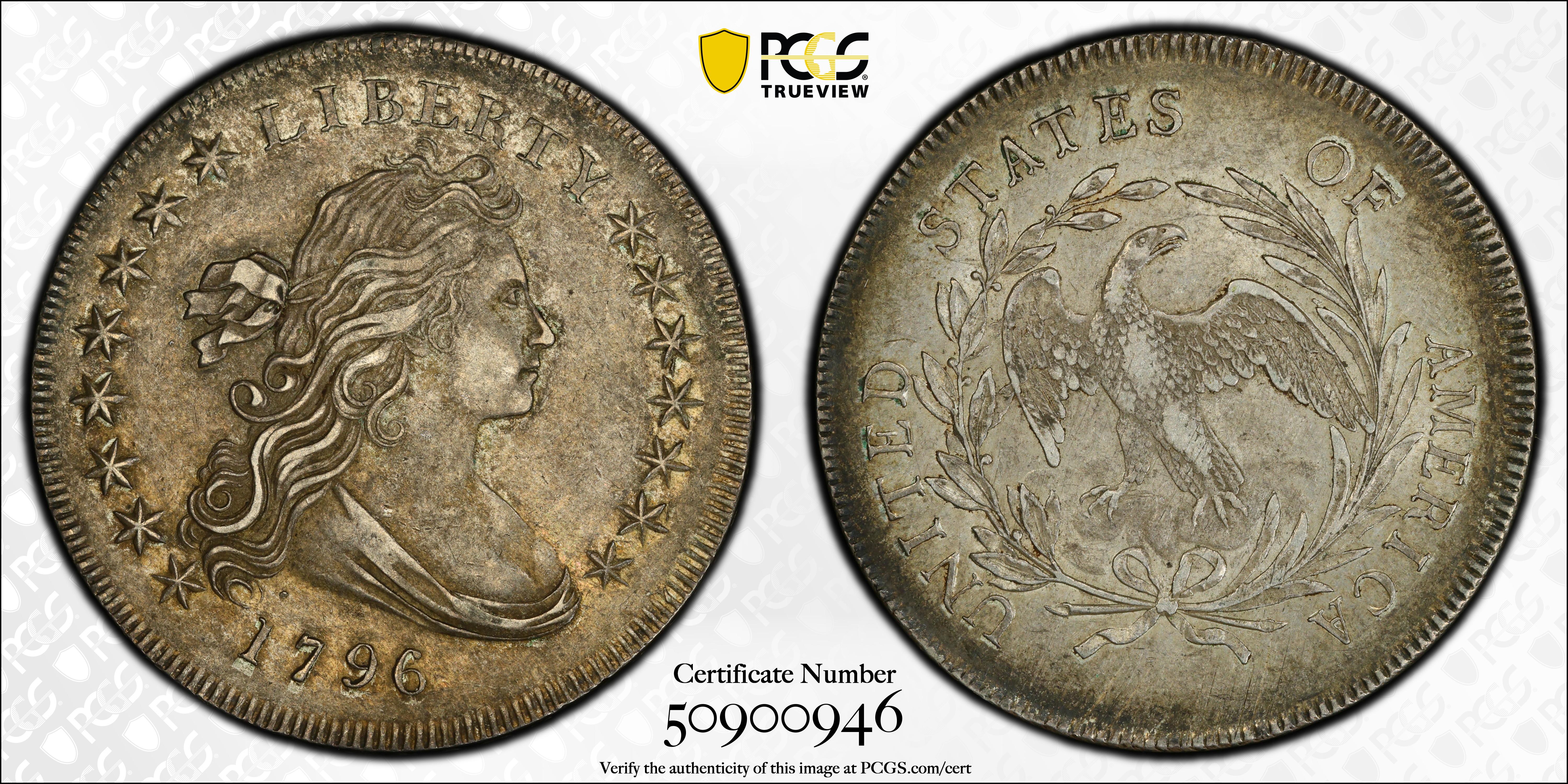 1796 $1 Small Date, Small Letters AU55 认证号50900946, PCGS号6859