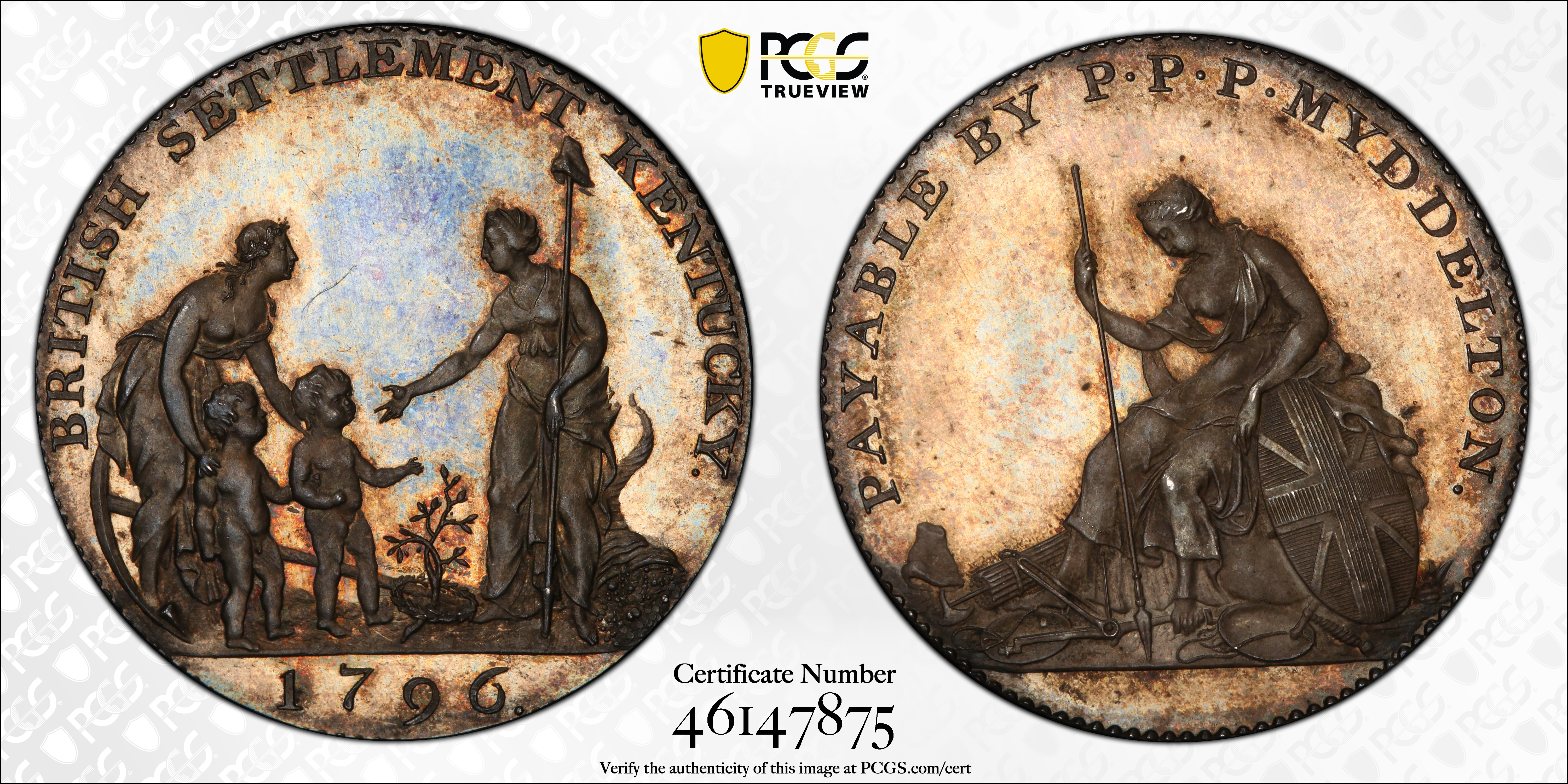 1796 AR Token Myddelton PR65 认证号46147875, PCGS号649