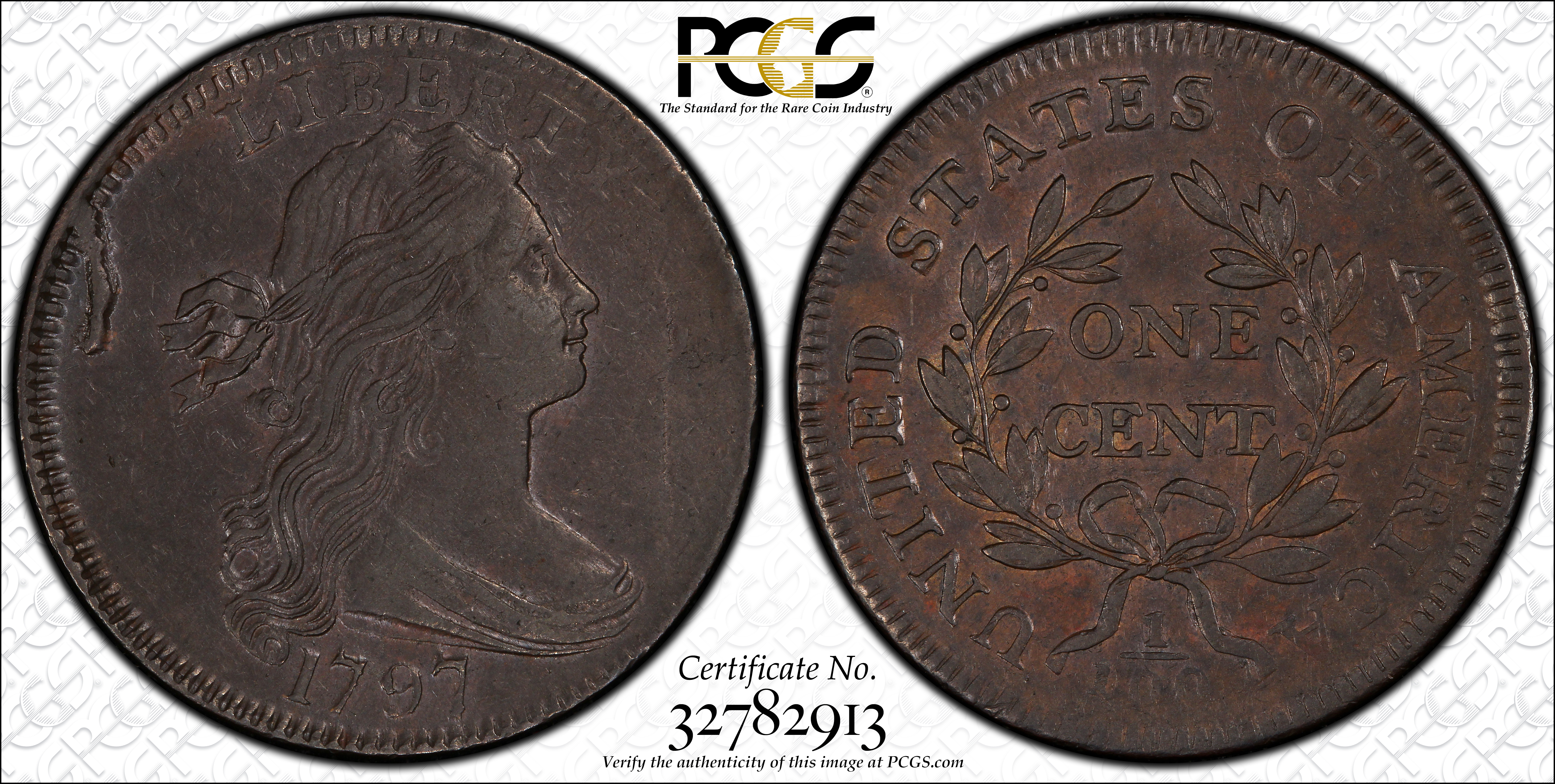 1797 1C S-131, No Stems, BN AU55BN 认证号32782913, PCGS号35981